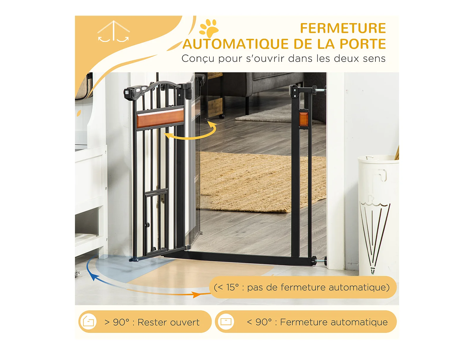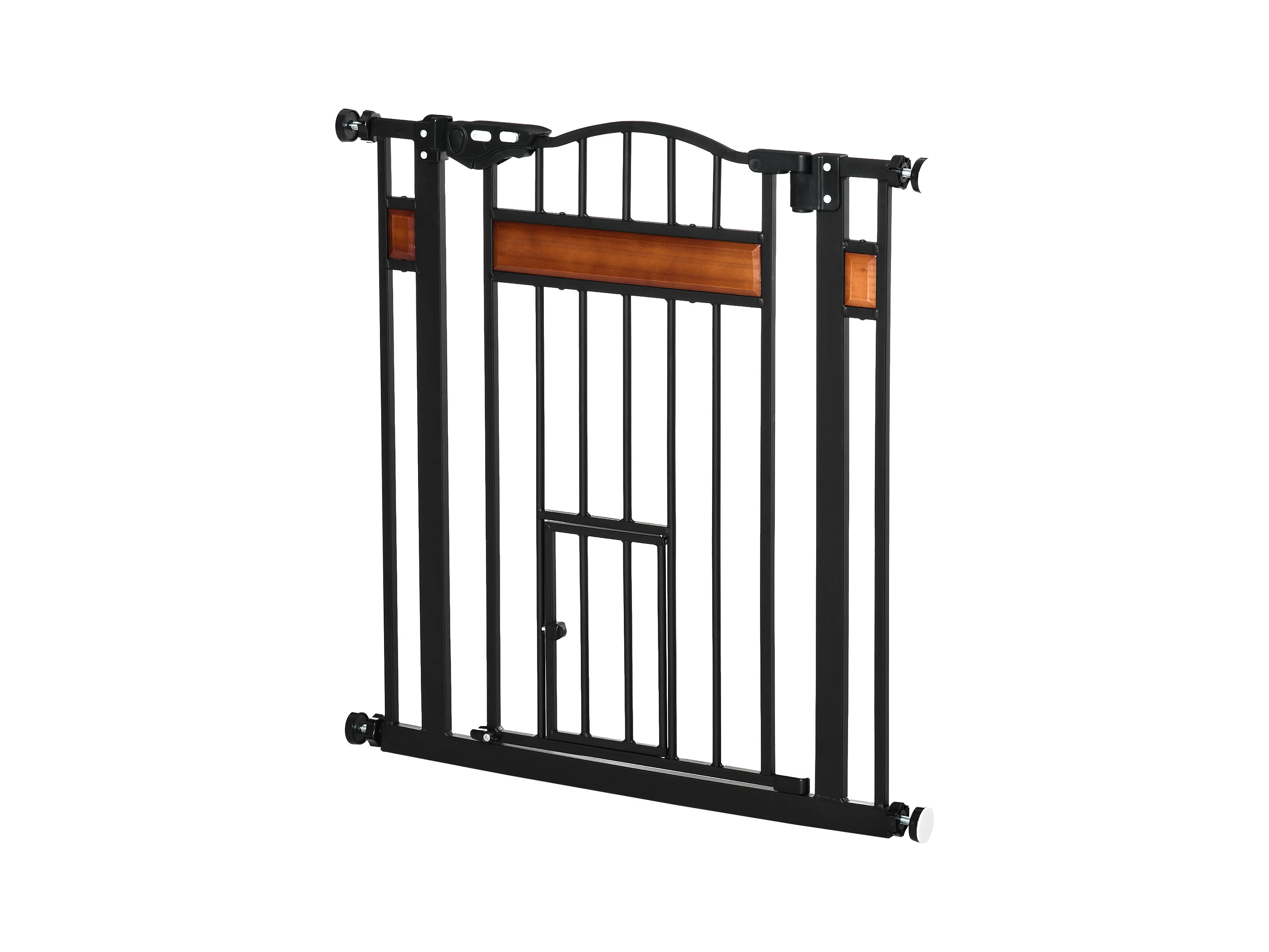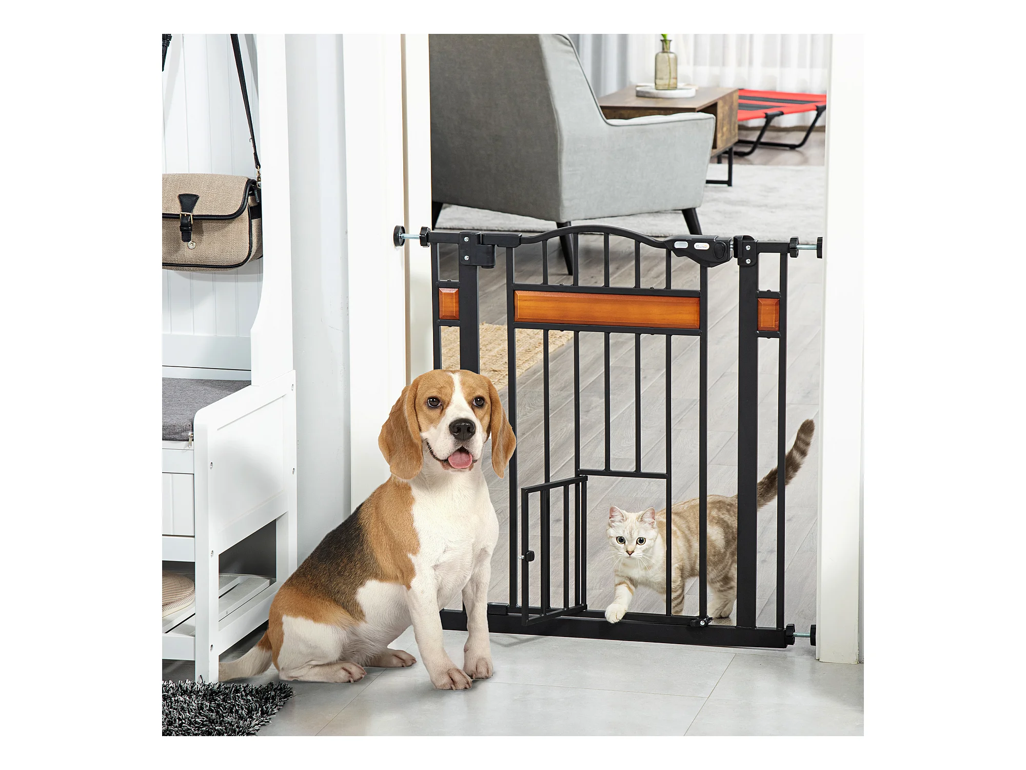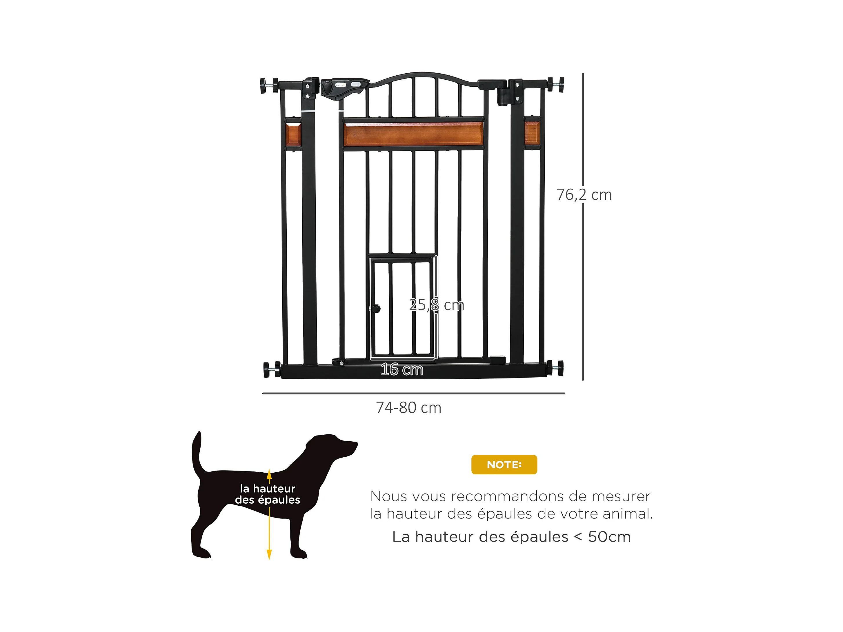 Barrière de sécurité animaux - longueur réglable dim. 74-80 cm - porte double verrouillage, ouverture double sens, petite porte -sans perçage - acier plastique noir