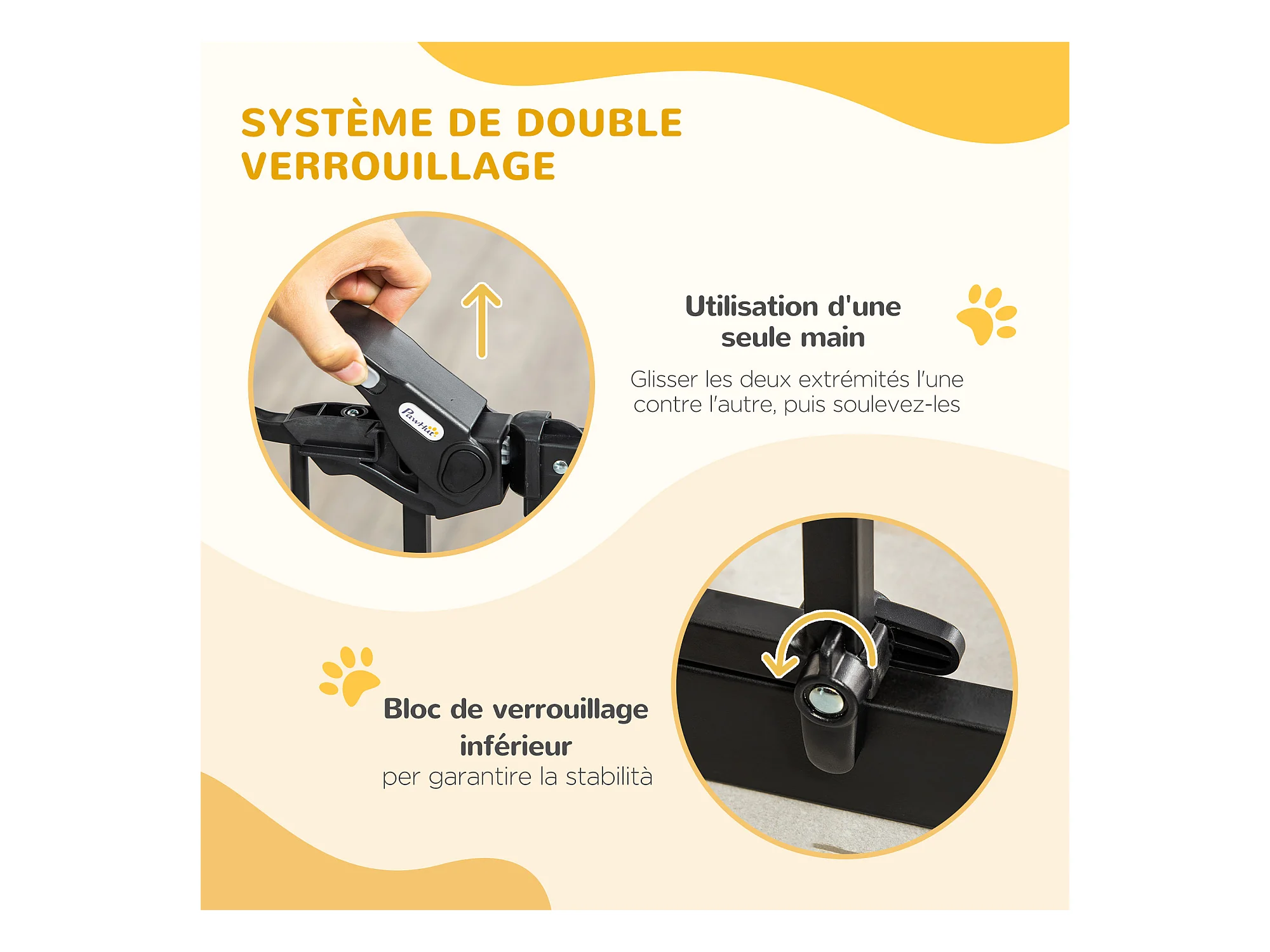 Barrière de sécurité pour chien extensible 74-80 cm -H. 94 cm - sans perçage, double verrouillage - métal noir