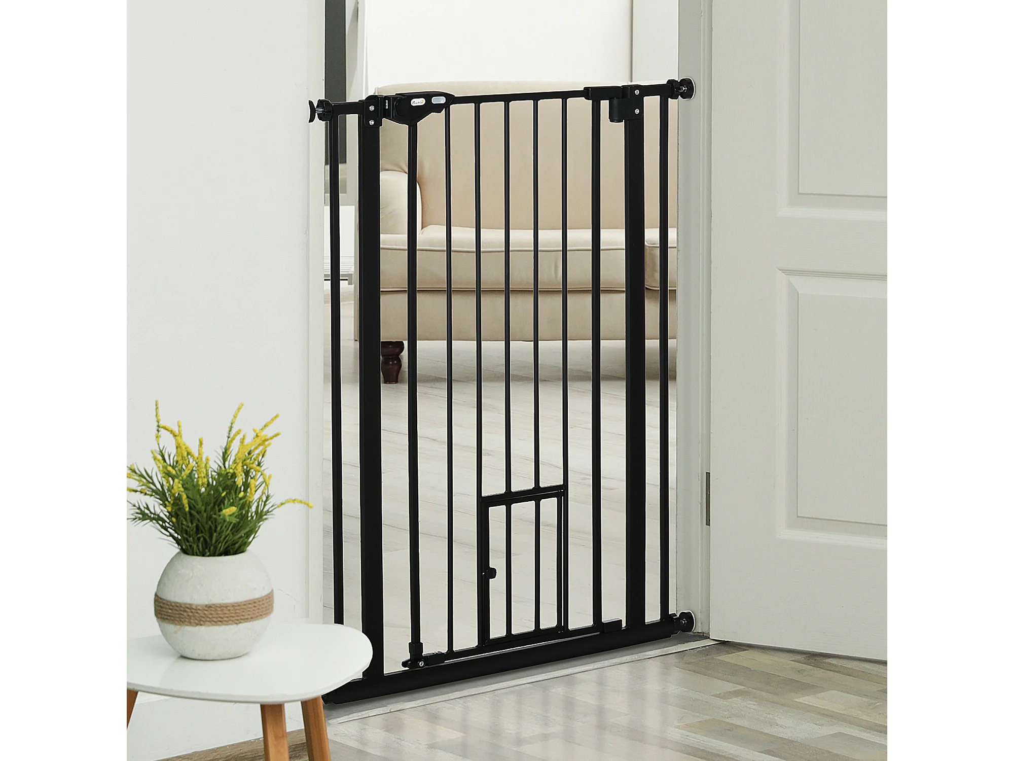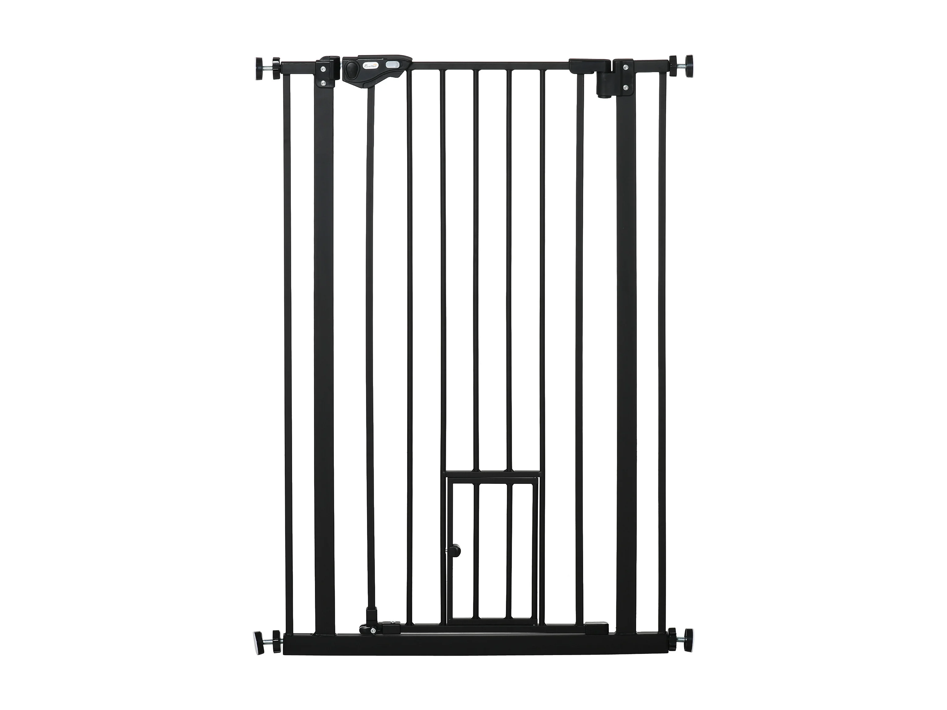 Barrière de sécurité animaux - longueur réglable dim. 74-80 cm - porte double verrouillage, ouverture double sens, petite porte -sans perçage - acier plastique noir