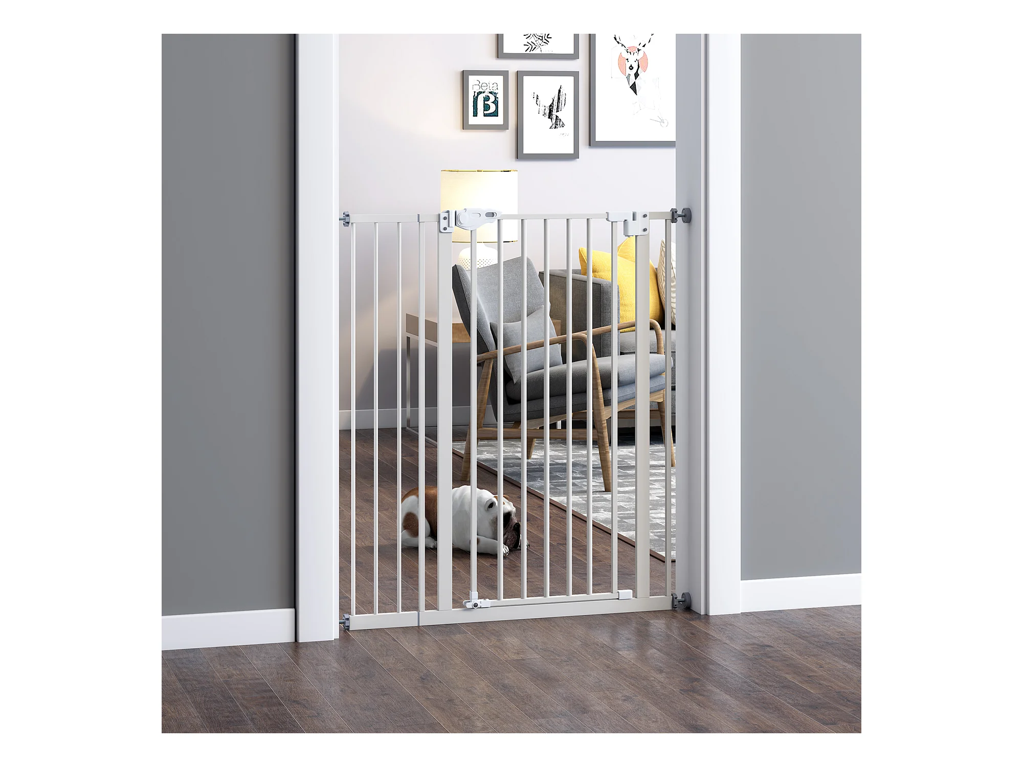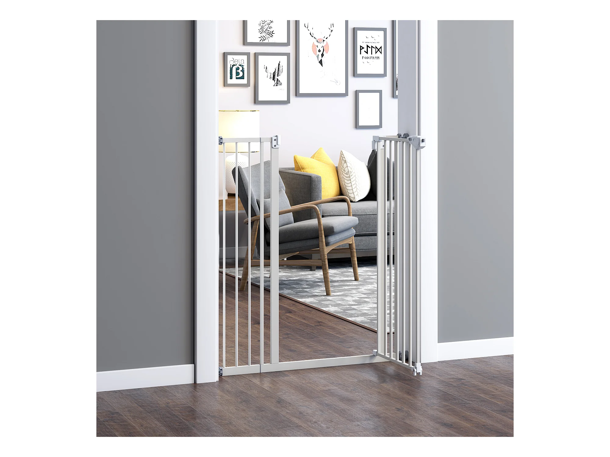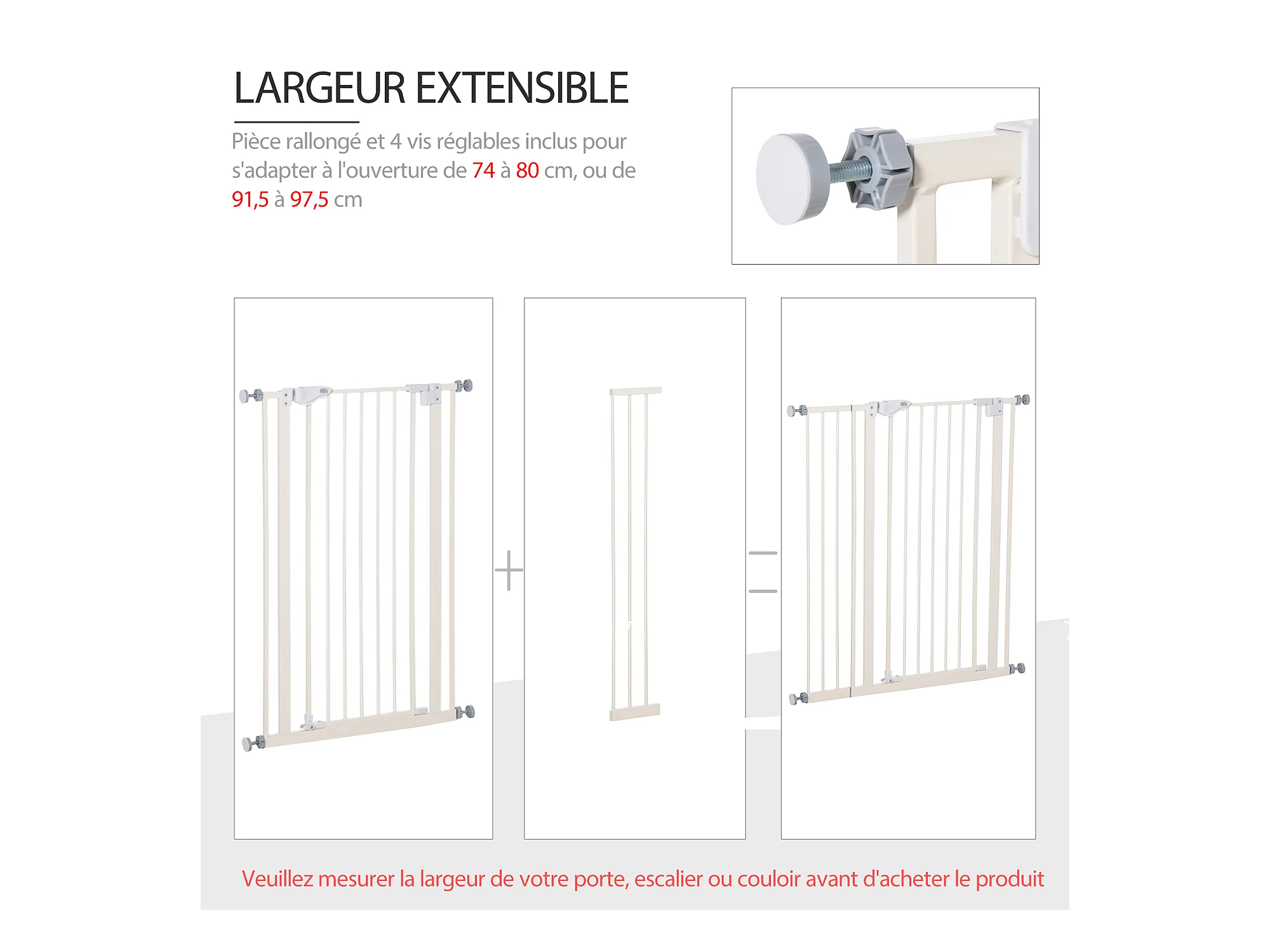 Barrière de sécurité longueur réglable dim. 74-84 cm ou 92-102 cm sans perçage métal plastique blanc