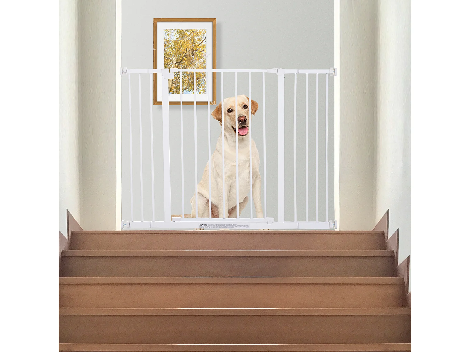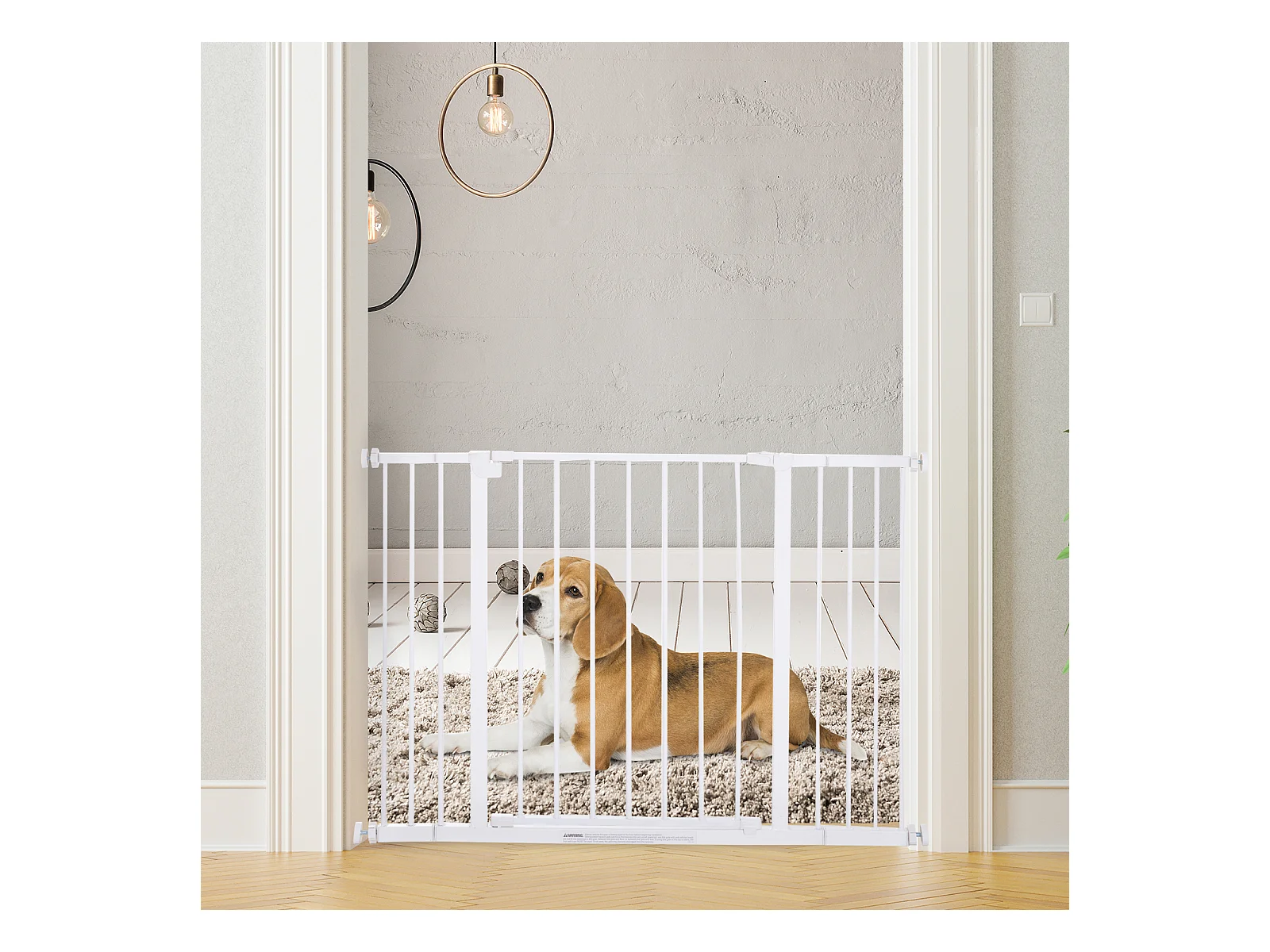 Barrière de sécurité pour chien - barrière à pression extensible - double système de verrouillage - acier blanc
