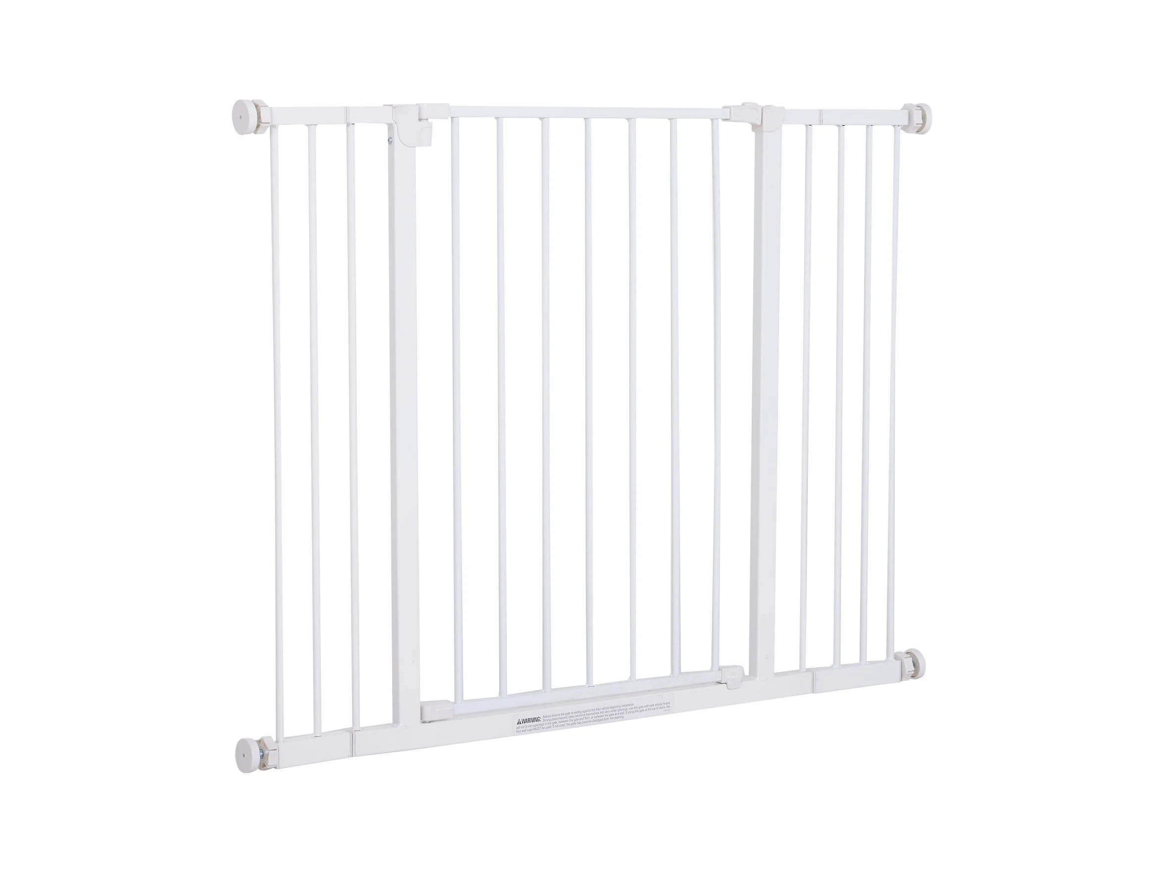 Barrière de sécurité animaux - longueur réglable dim. 74-97,5 cm - porte double verrouillage, ouverture double sens -sans perçage - acier plastique blanc