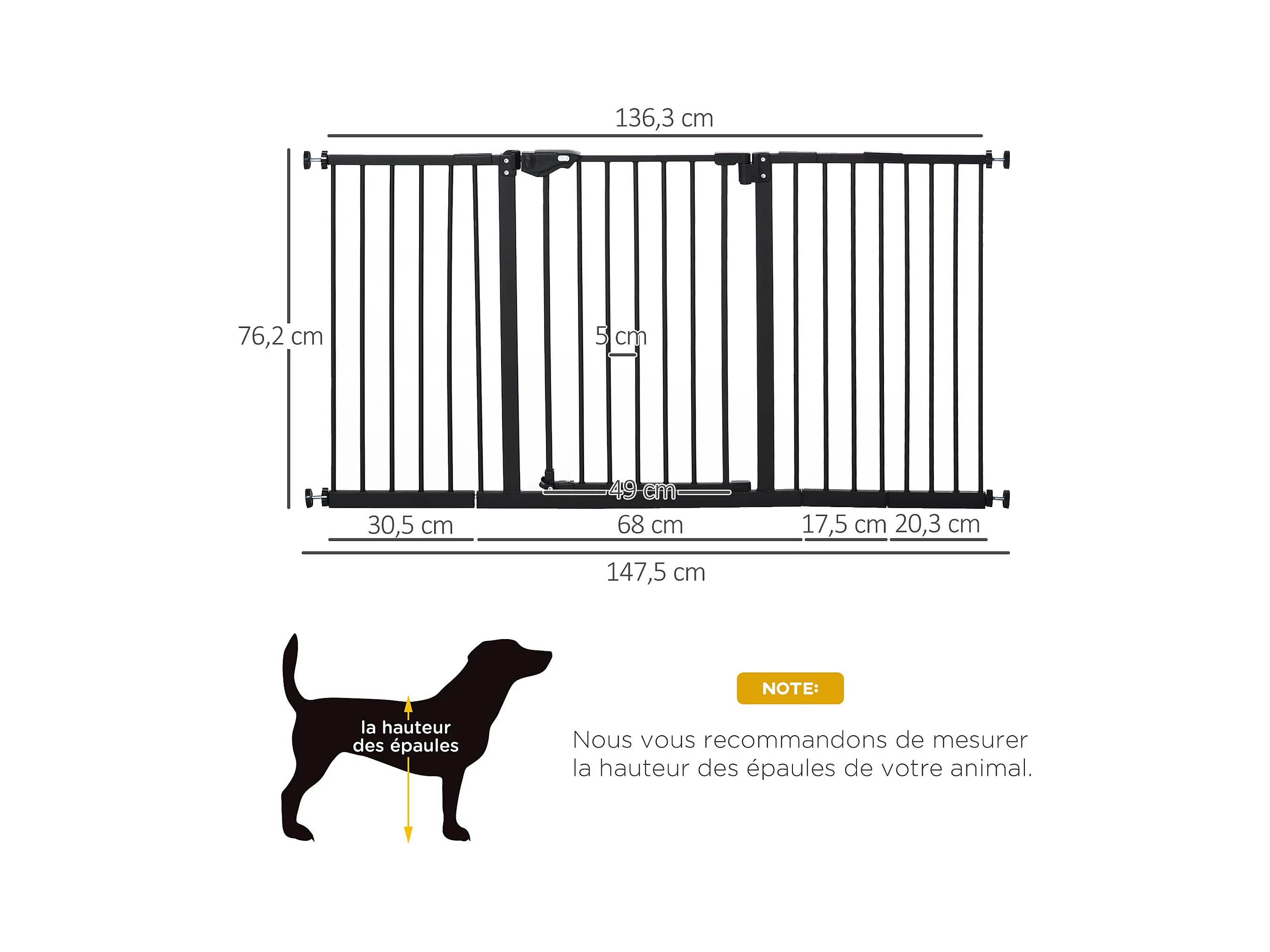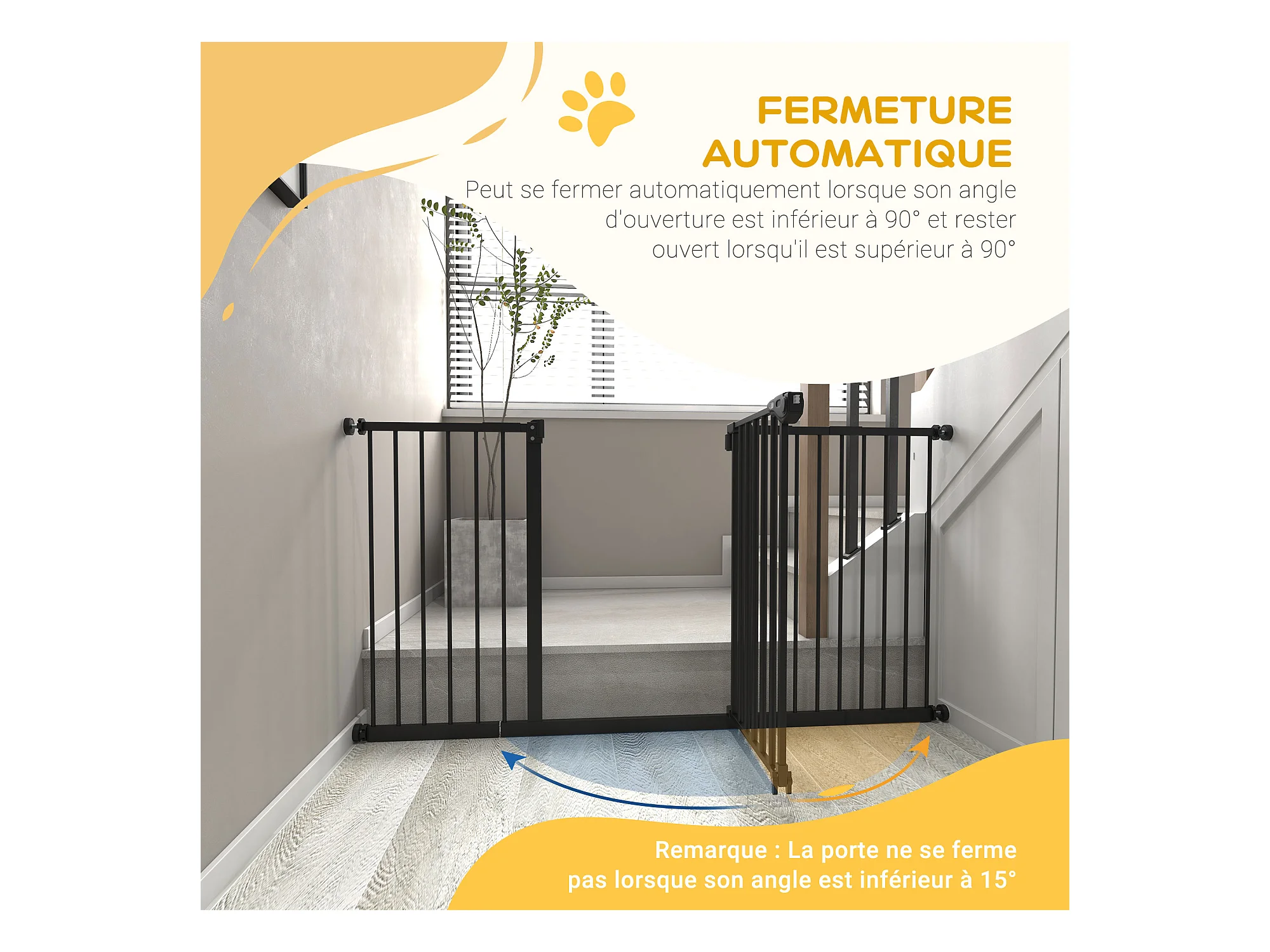 Barrière de sécurité pour chien - barrière à pression extensible - double système de verrouillage - acier noir