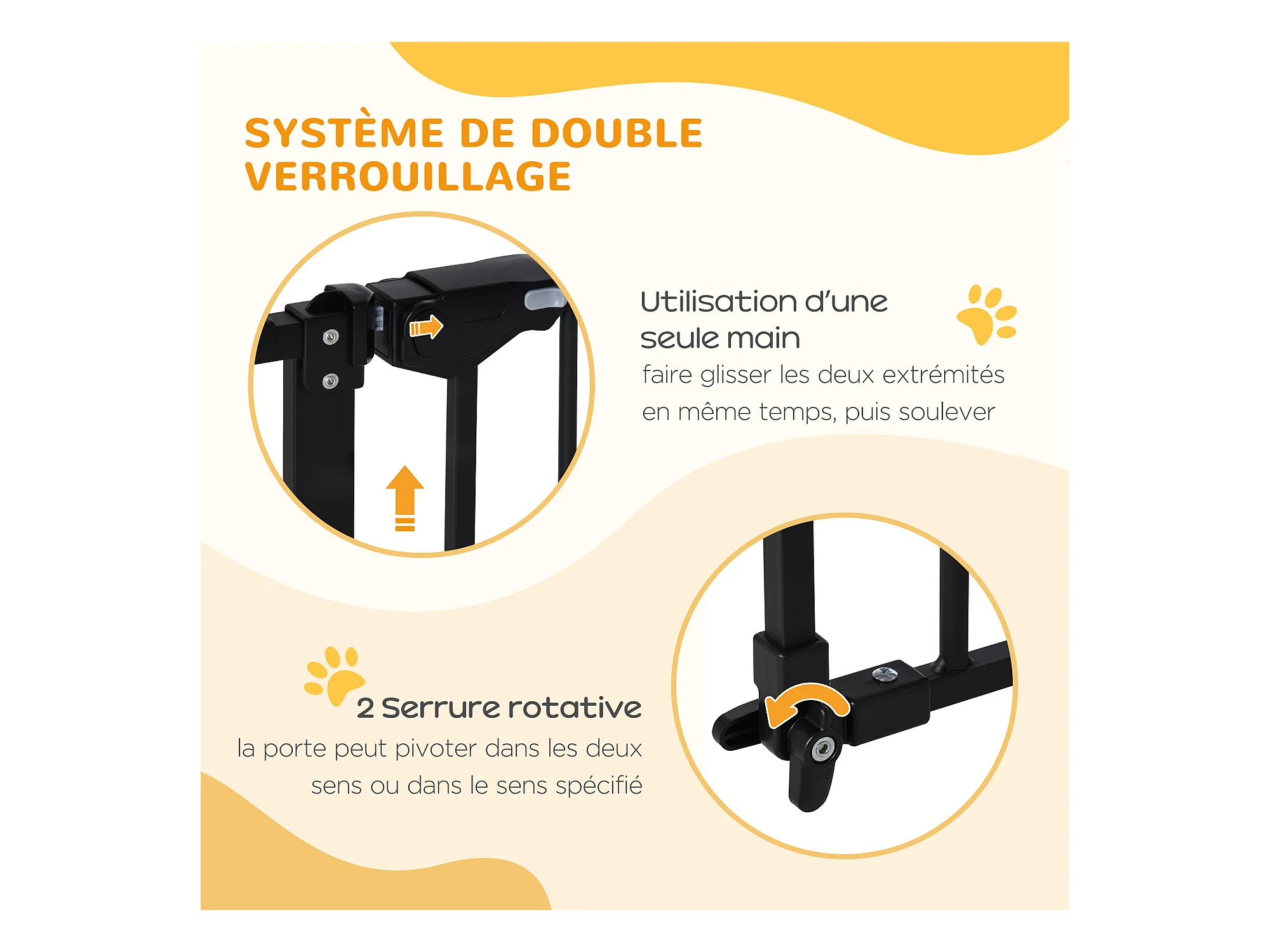 Barrière de sécurité chien H.104 cm - porte double verrouillage - sans perçage - acier noir