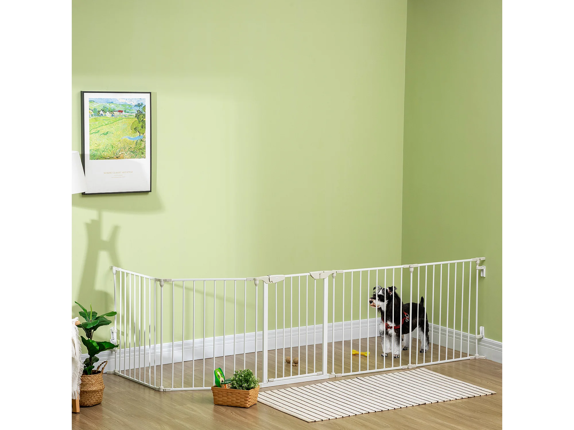 Barrière de sécurité parc enclos chien modulable pliable porte verrouillable intégrée 5 panneaux en métal 300L max. x 74,5H cm métal PP blanc