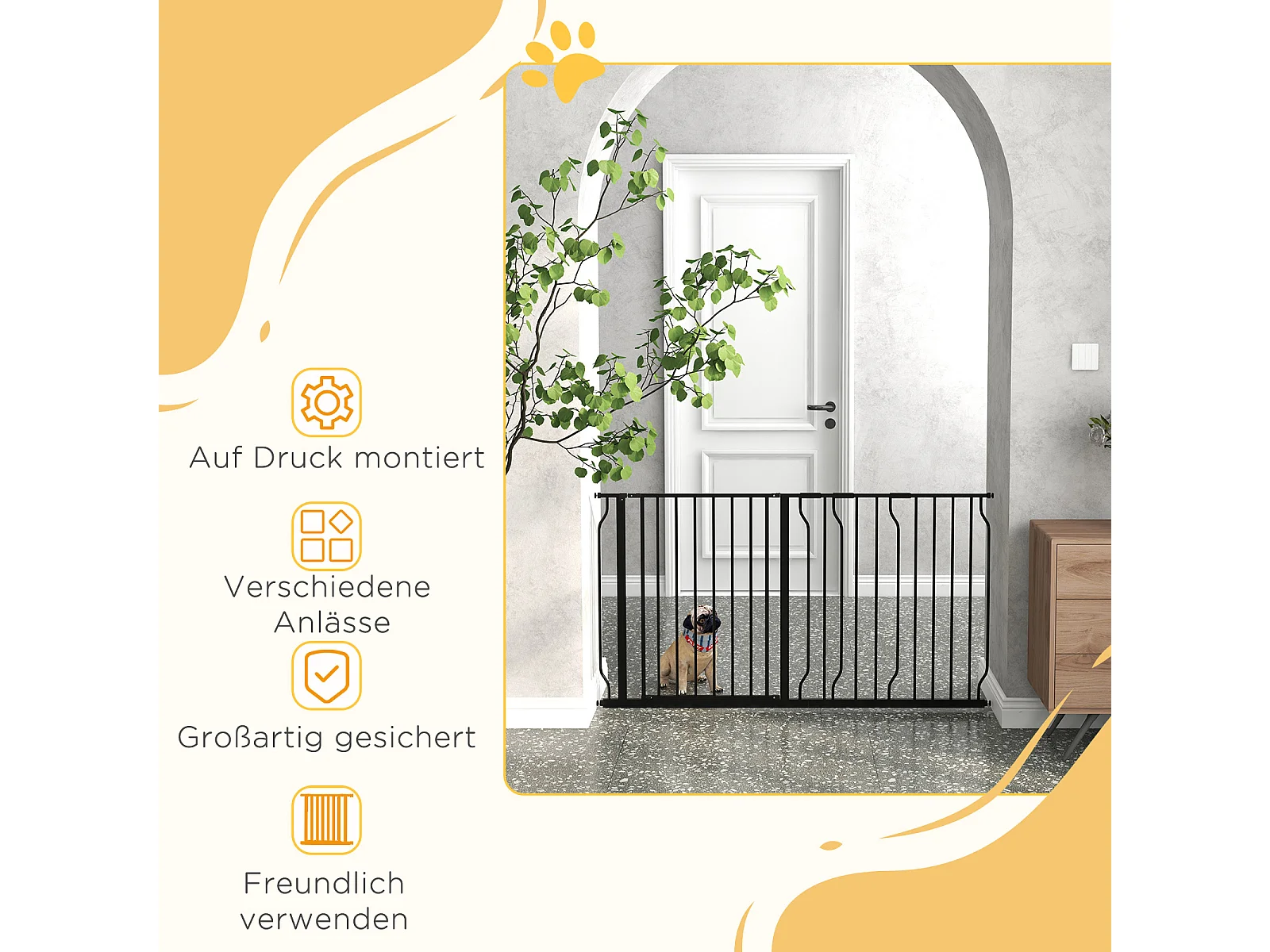 Barrière pour chien réglable, système de verrouillage double, ouverture bidirectionnelle, acier et ABS, noir (75-145x76x3 cm)