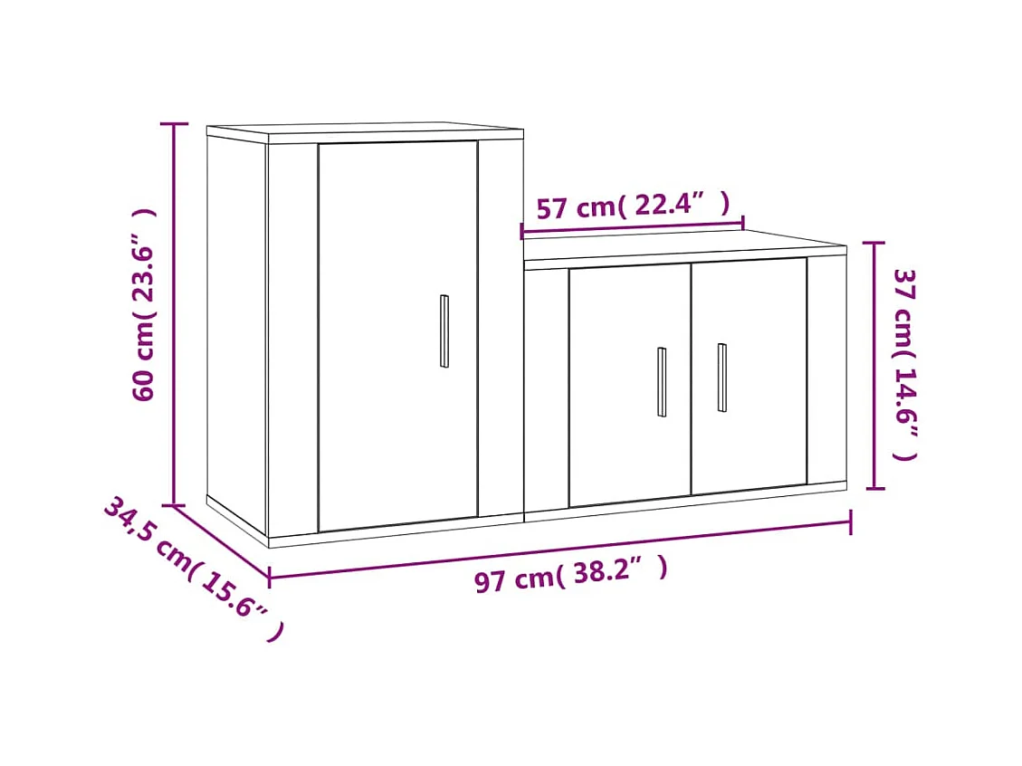 Tyrland Ensemble de meubles TV 2 pcs Chêne fumé Bois d'ingénierie