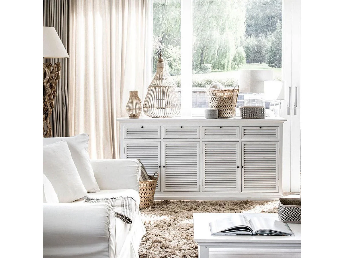 Buffet bas 4 portes 4 tiroirs Bois Blanc - Vénitiennes Interior's
