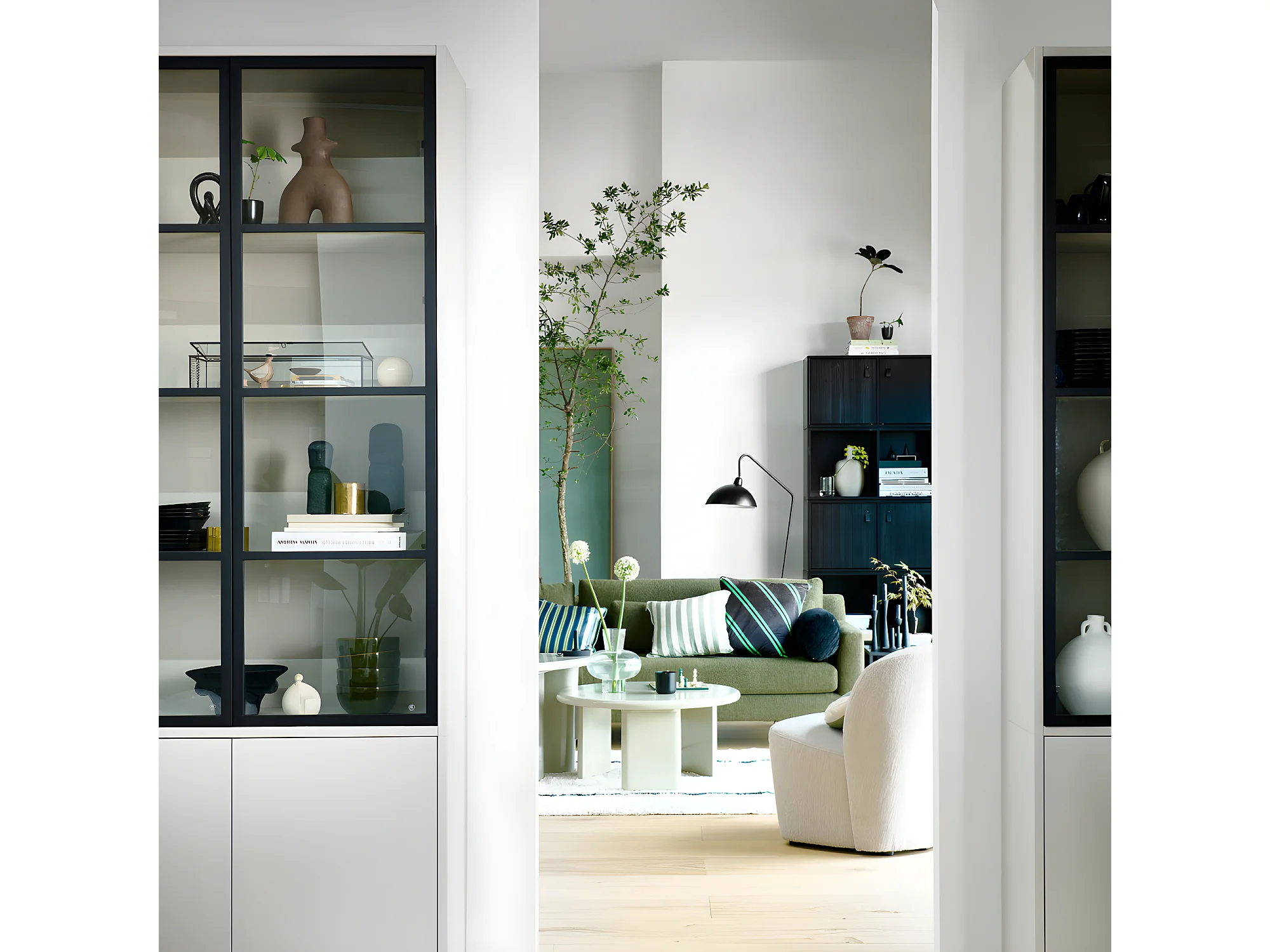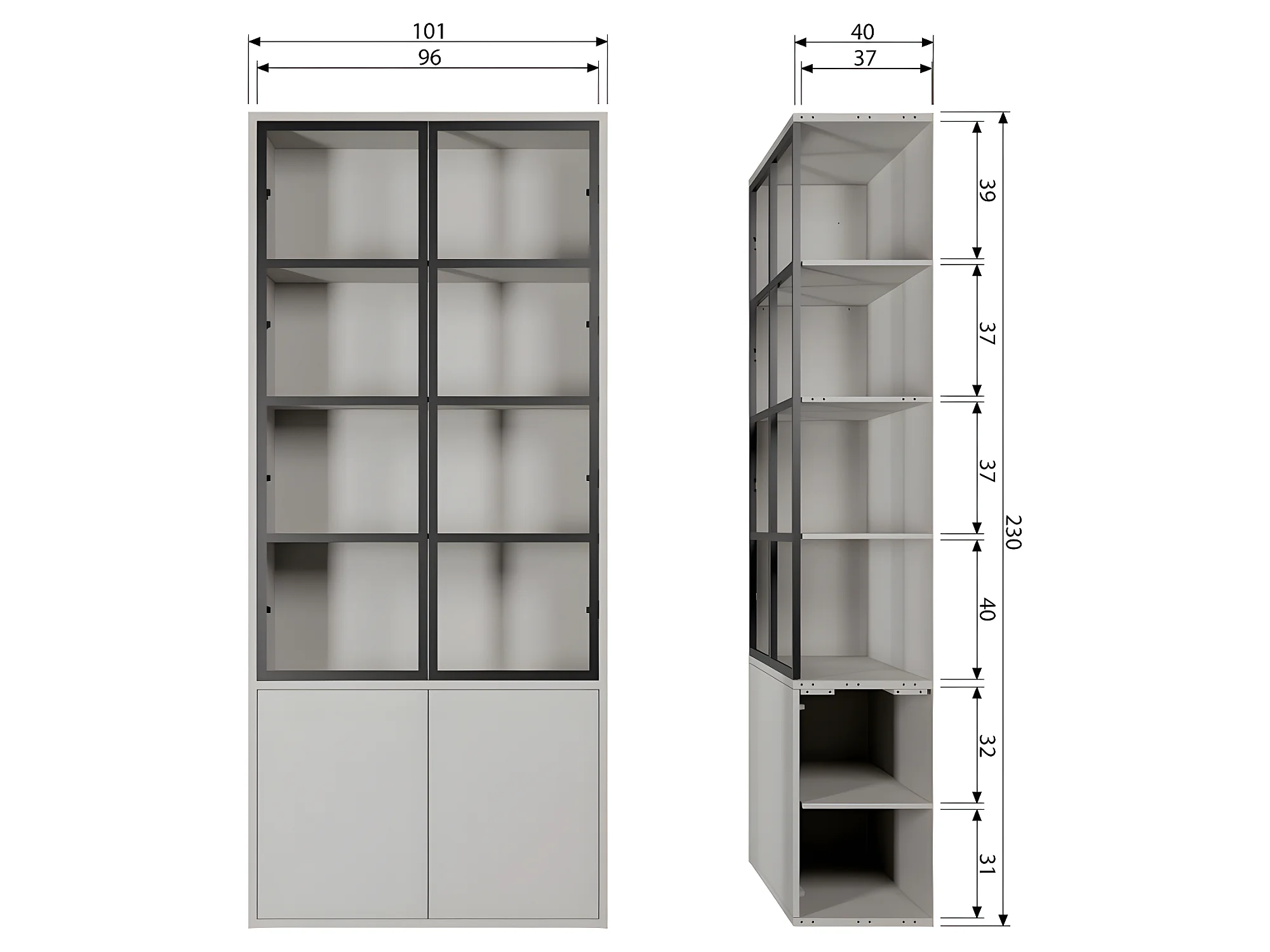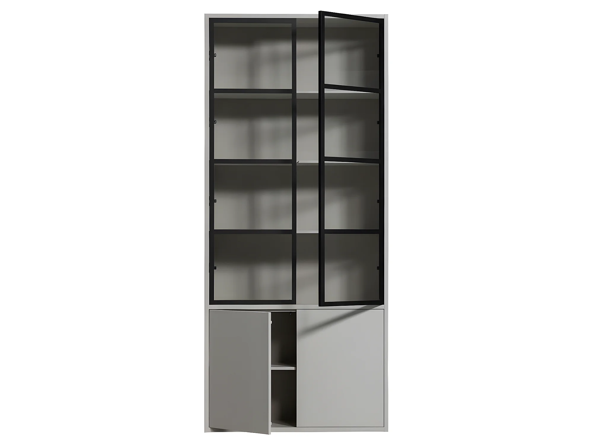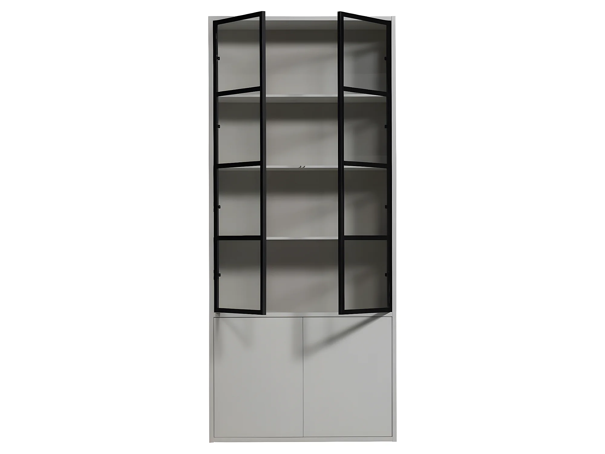Basic - Vitrine 4 portes en bois et métal H230cm - Gris clair