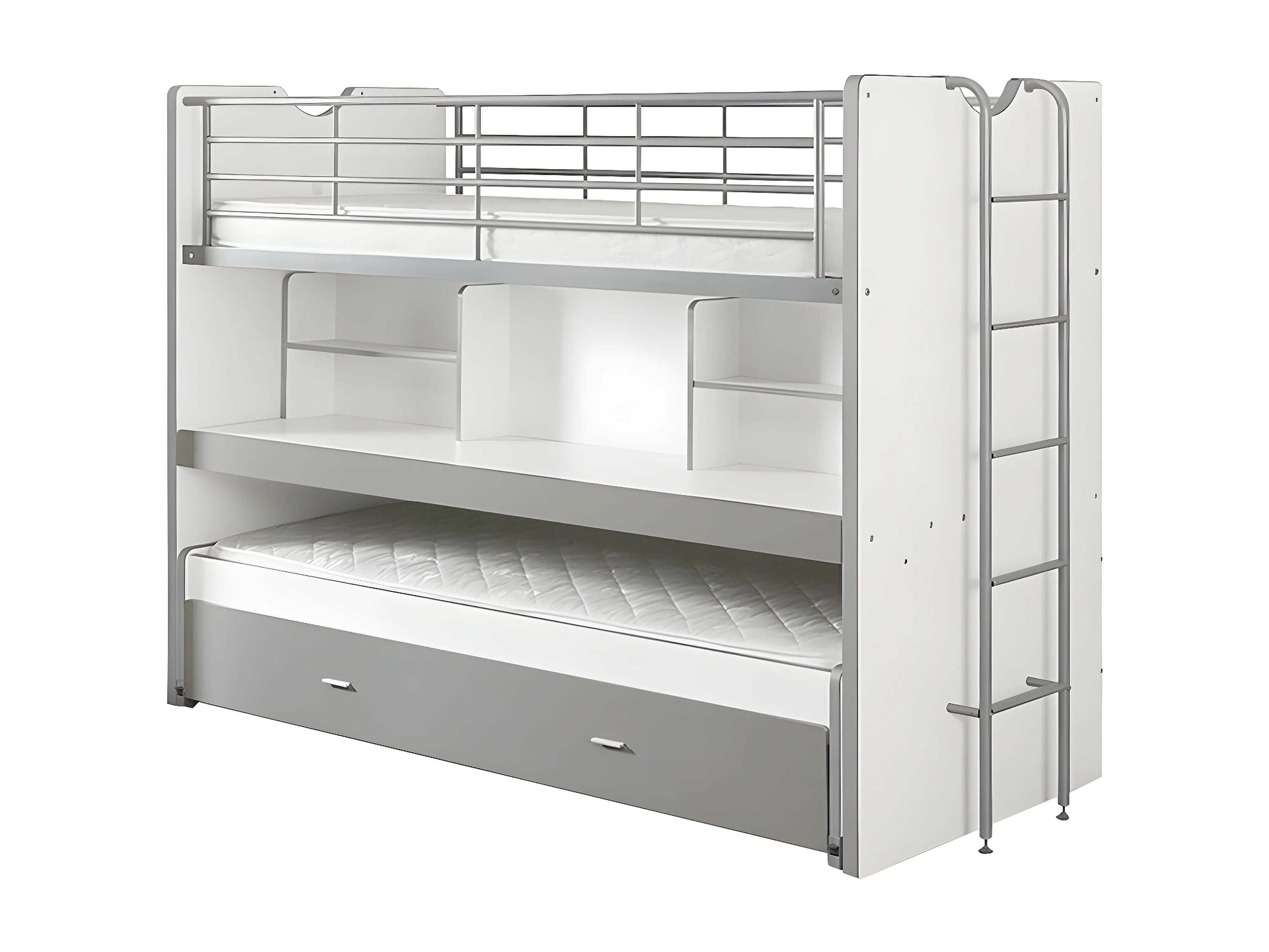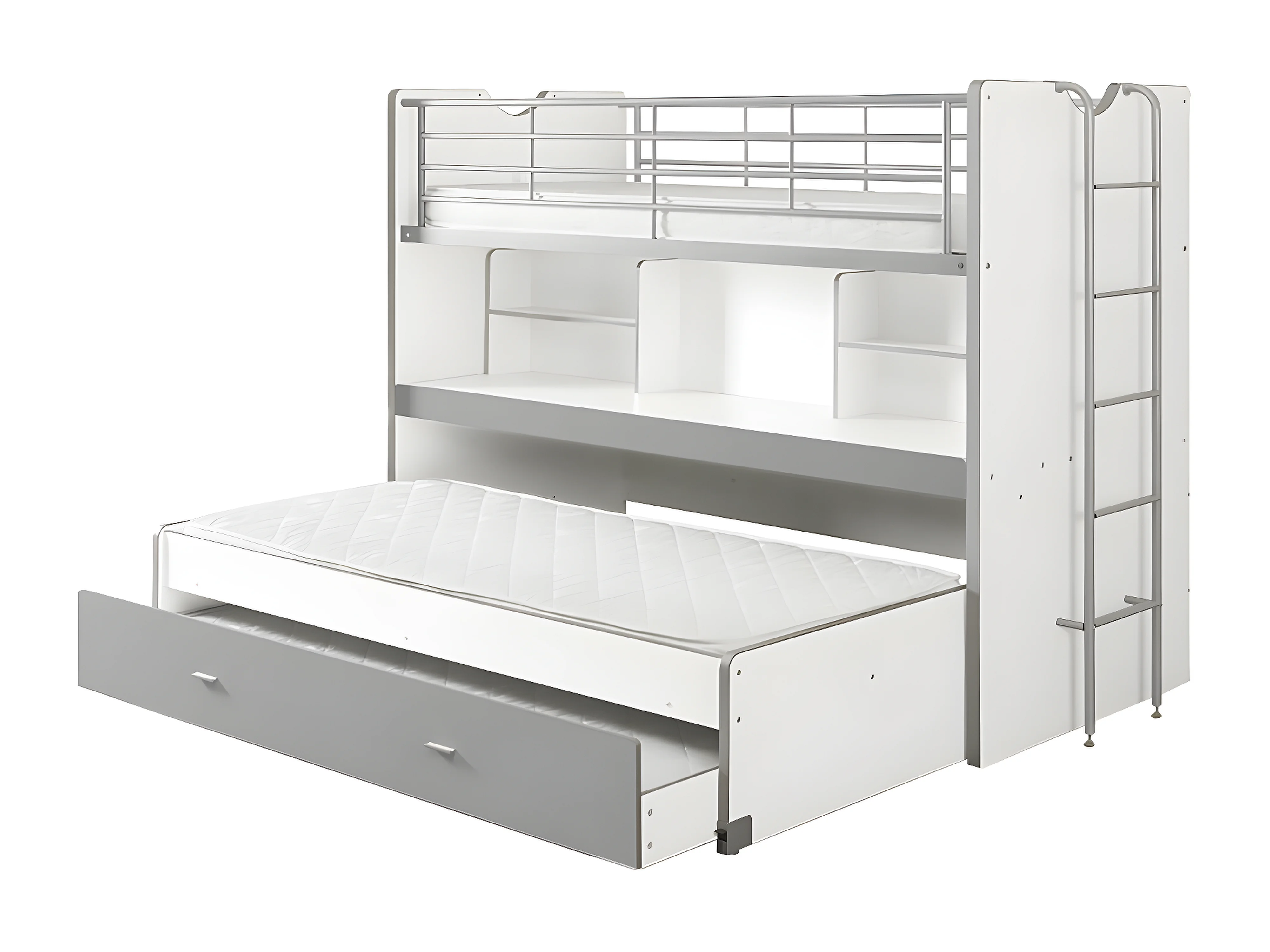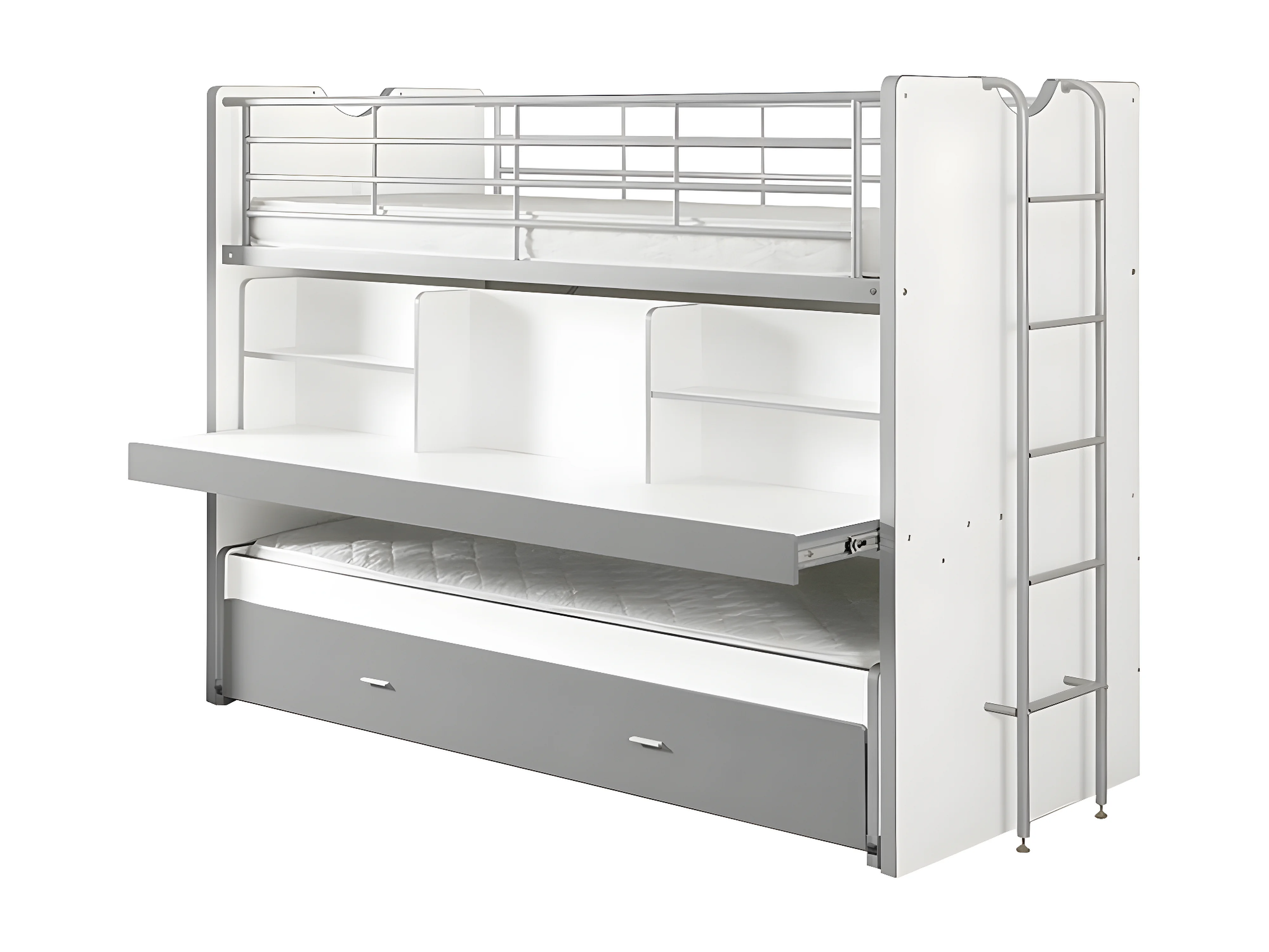 BAYMAX - Lits Superposés Gigognes 90x200cm Gris + Bureau Coulissant