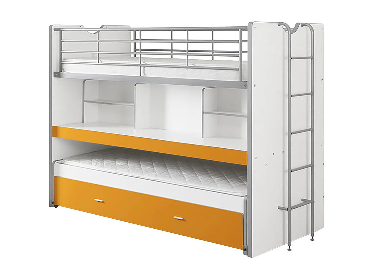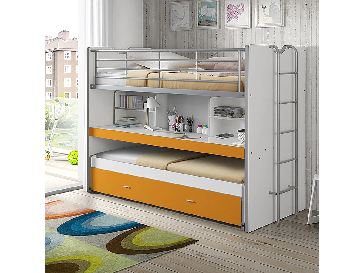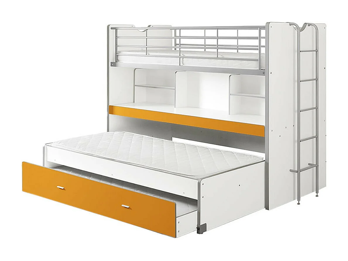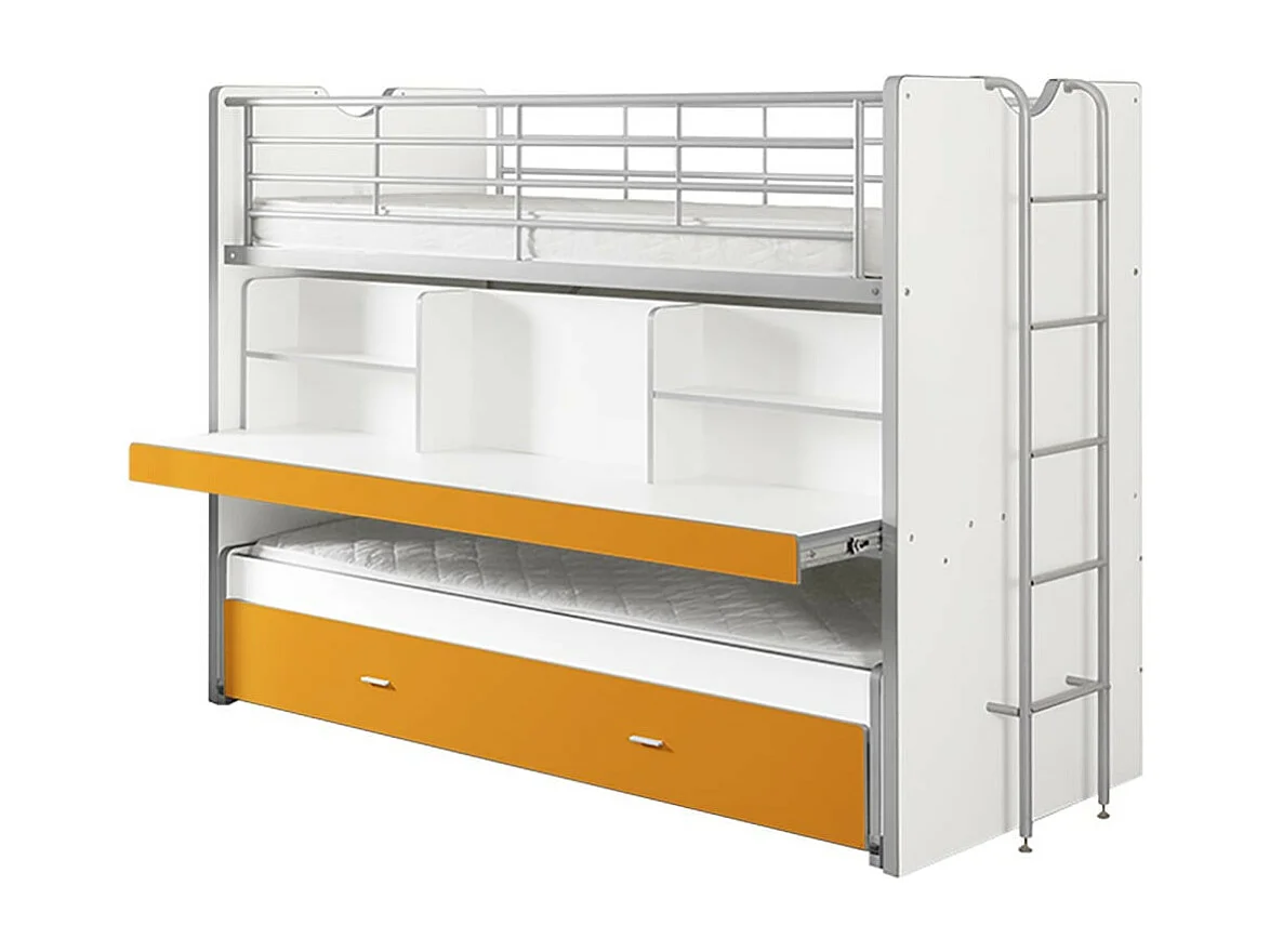 BAYMAX - Lits Superposés Gigognes 90x200cm Jaune + Bureau Coulissant