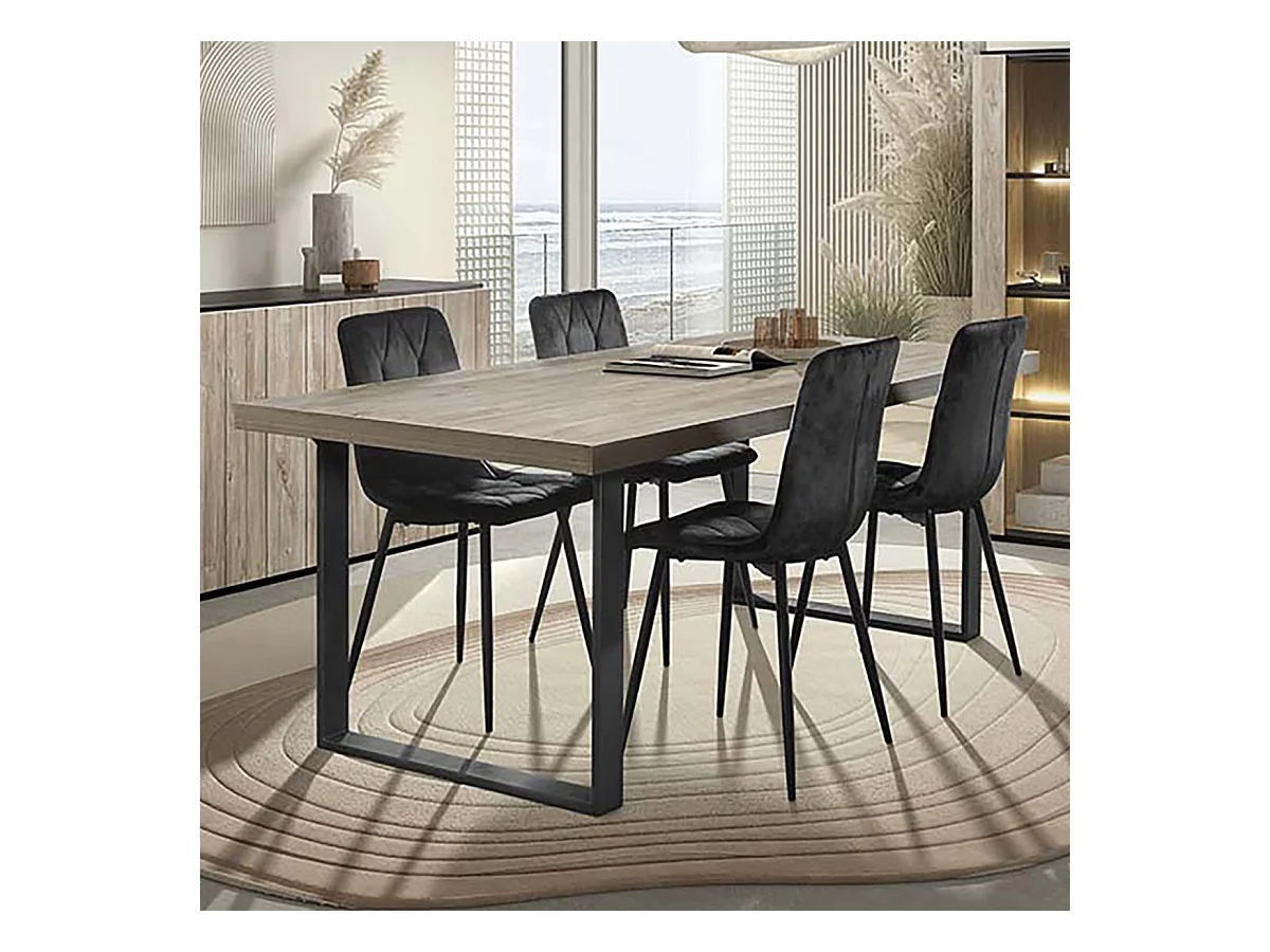 Table repas 200cm plateau aspect bois clair pieds A métal noir - BEACH