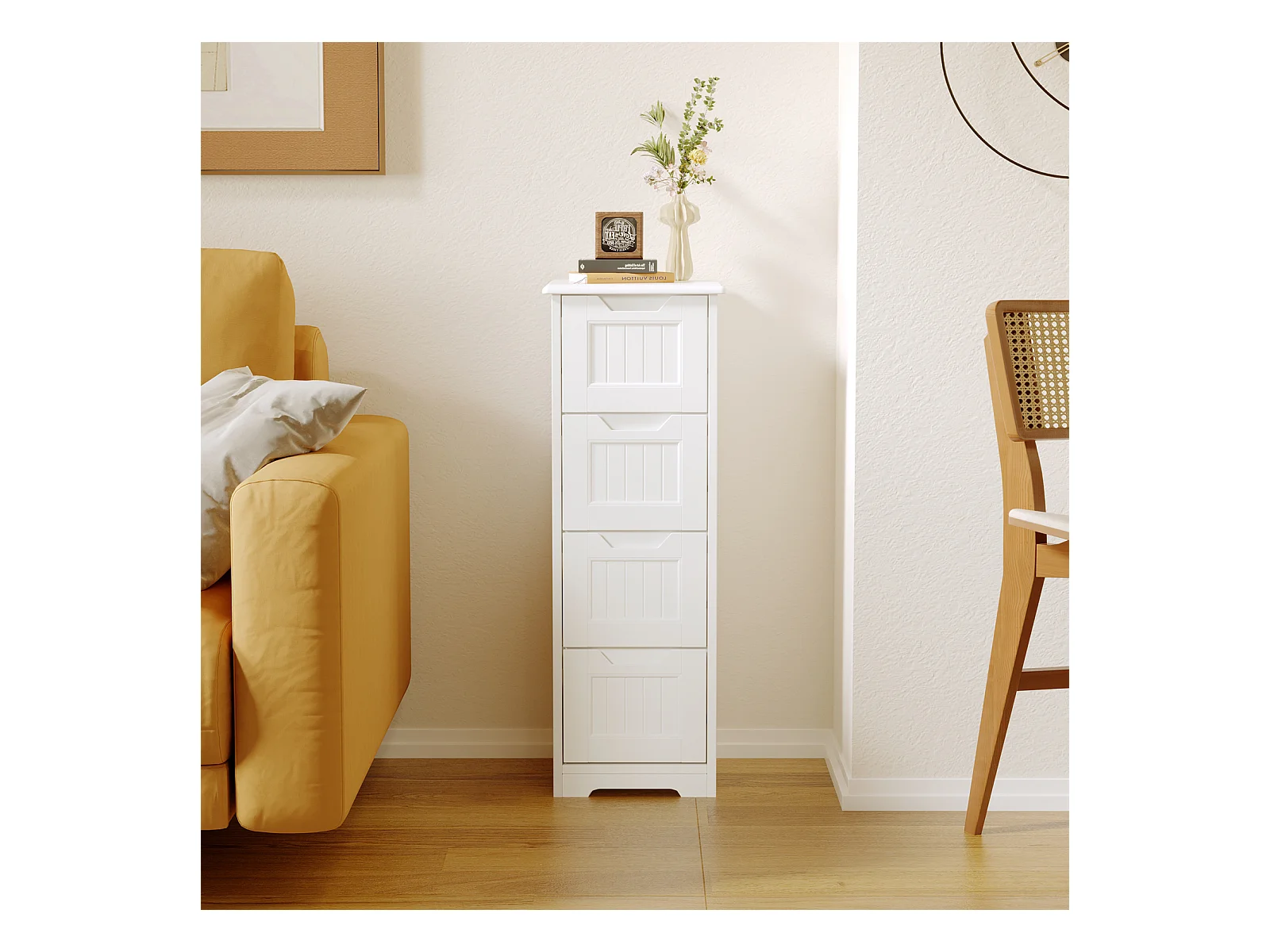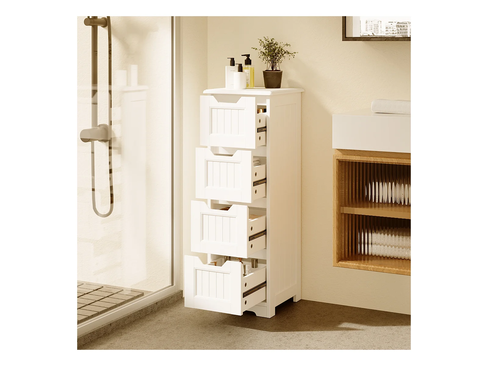 Bealife Meuble Salle de Bain Petit Meuble de Rangement Sur Pied 4 Tiroirs 28 x 28 x 84 cm Bas Commode SDB Armoire Blanc