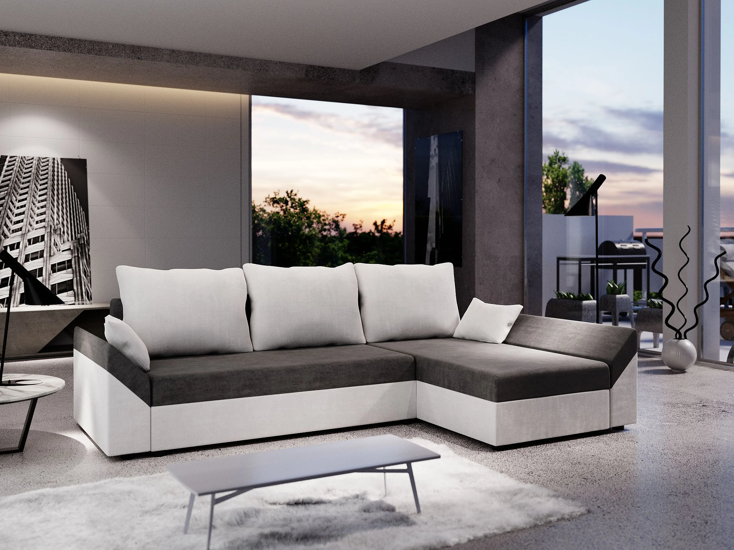 BEDANTE Canapé d’angle DANTE L droite Rainbow 27 + 31 Gris/Blanc Forme L