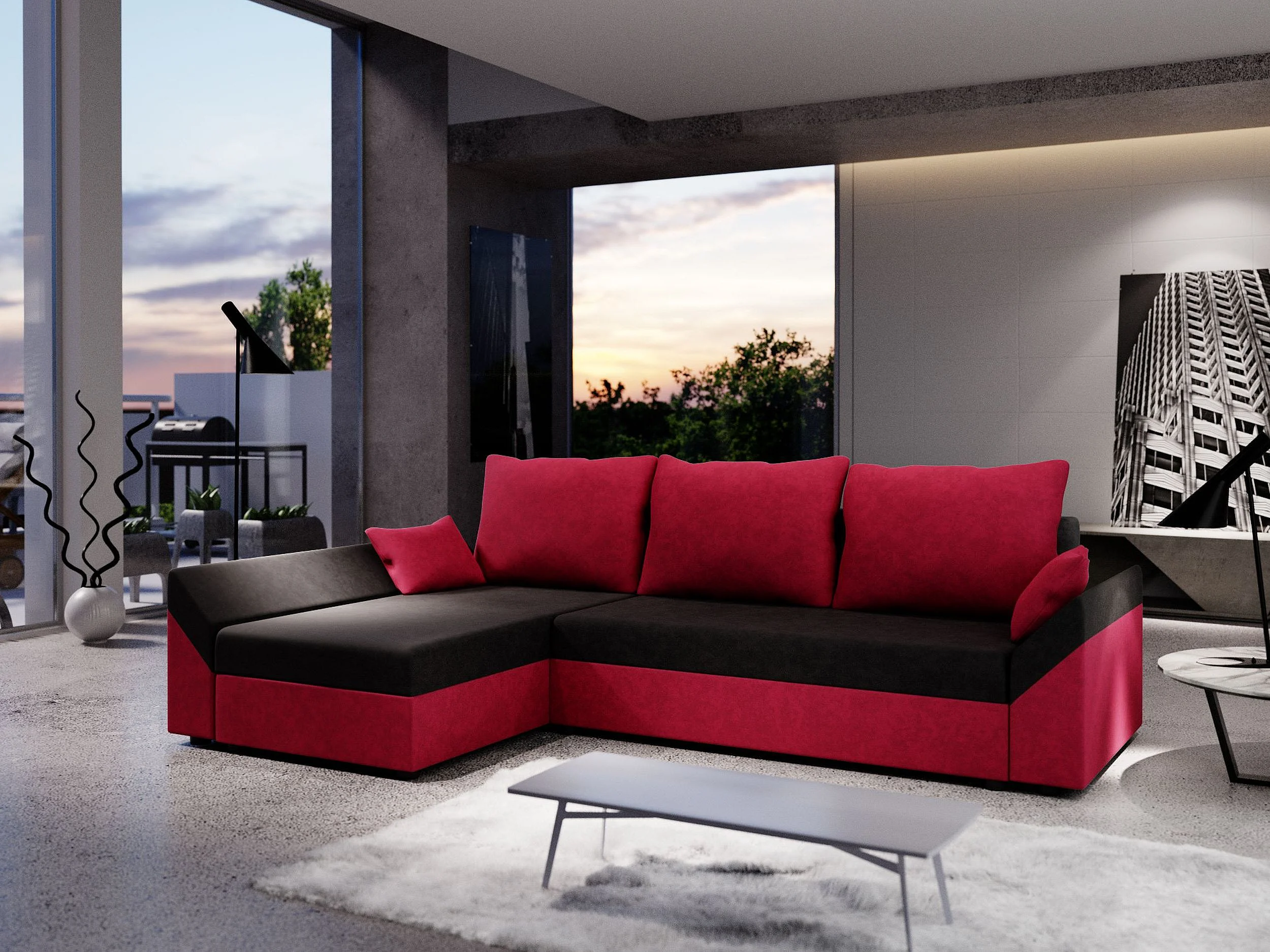 BEDANTE Canapé d’angle DANTE L gauche Rainbow 15 + 22 Noir/Rouge Forme L