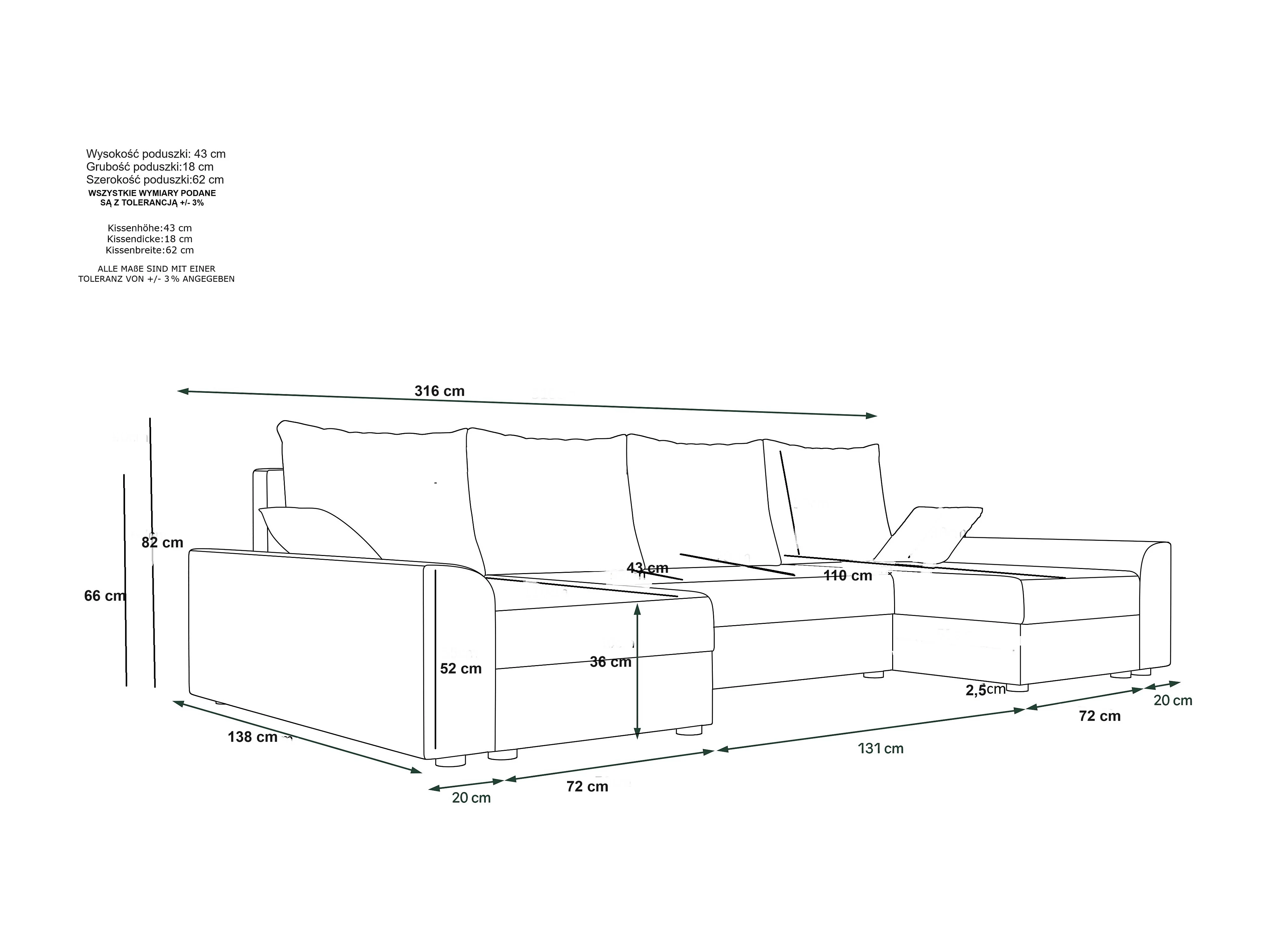 BEDANTE Canapé d’angle DANTE U Rainbow 15 + 22 Noir/Rouge Forme U, Canapé avec espace de rangement, Coffre de lit, Canapé de salon, Canapé, Canapé, Canapé-lit