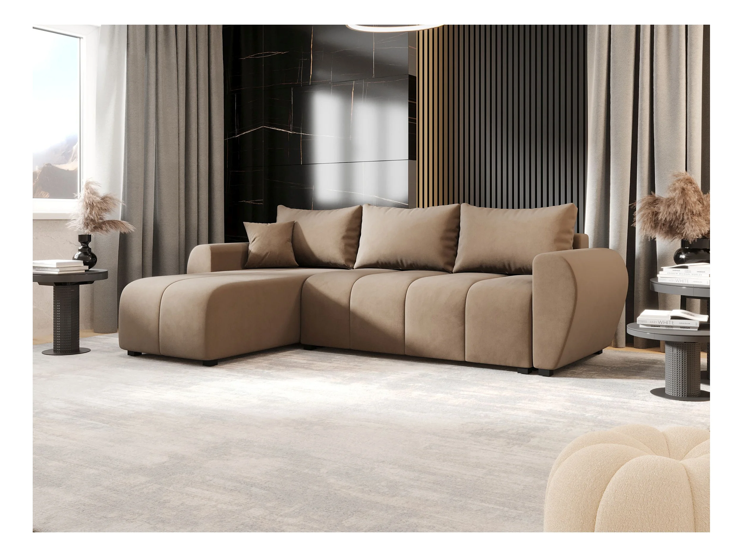 BEDANTE canapé d'angle MOLISA L Itaka 48 gauche marron avec fonction de couchage canapé en forme de L