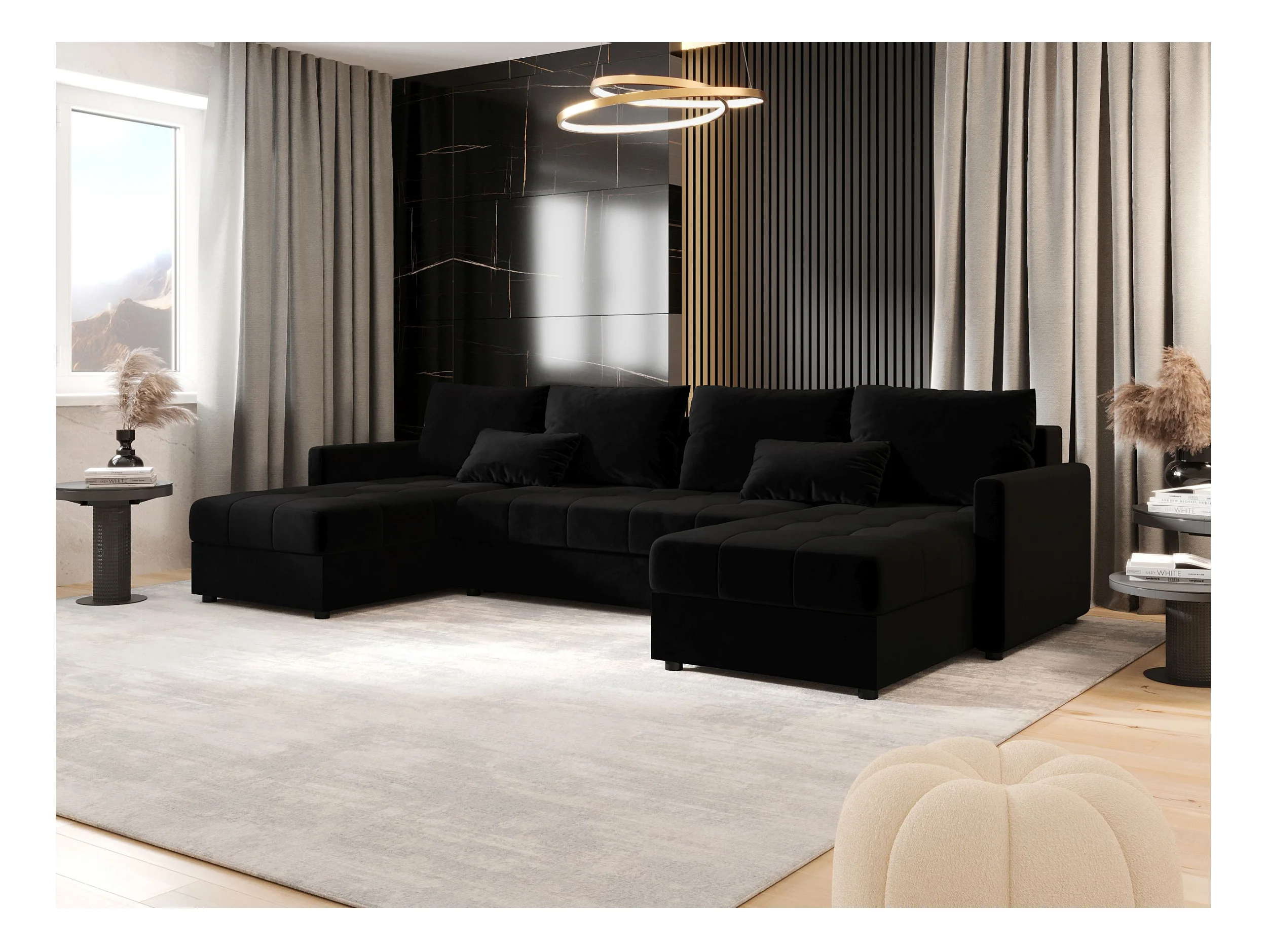 BEDANTE canapé d'angle MOS U BIS Itaka 15 noir avec fonction de couchage canapé en U avec coffre de rangement canapé de salon canapé convertible coffre de rangement