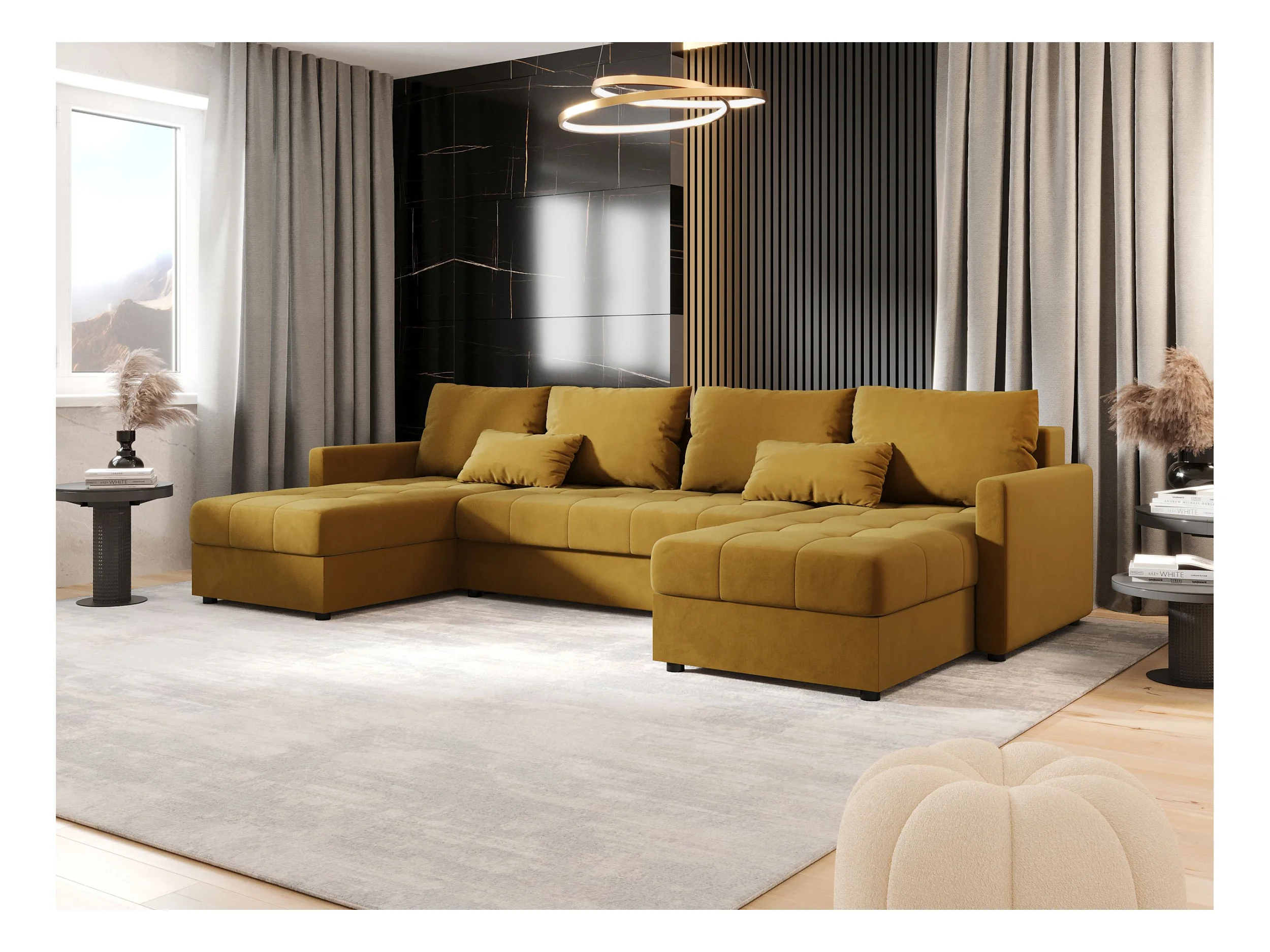BEDANTE canapé d'angle MOS U BIS Itaka 33 orange avec fonction de couchage canapé en U avec coffre de rangement