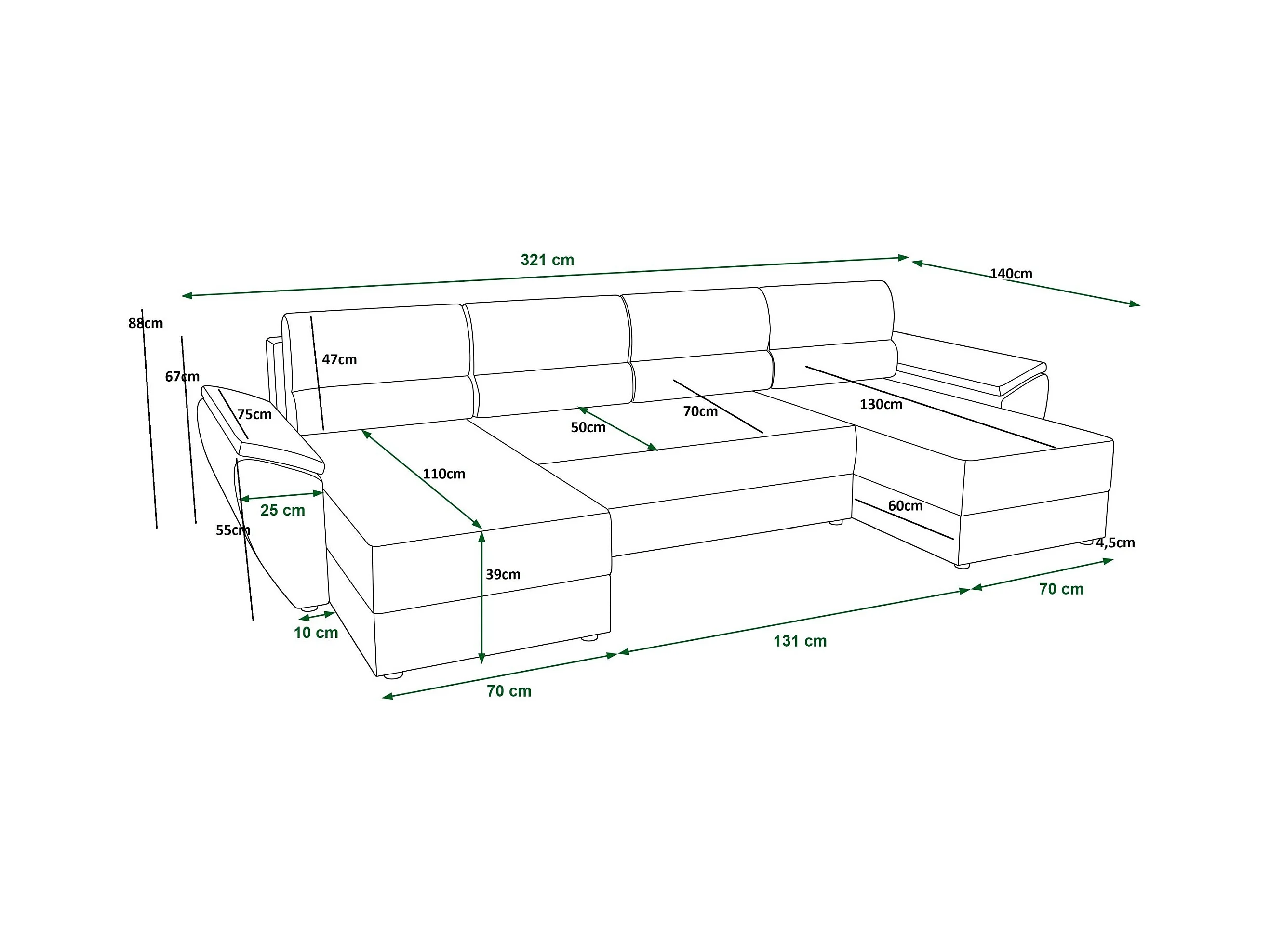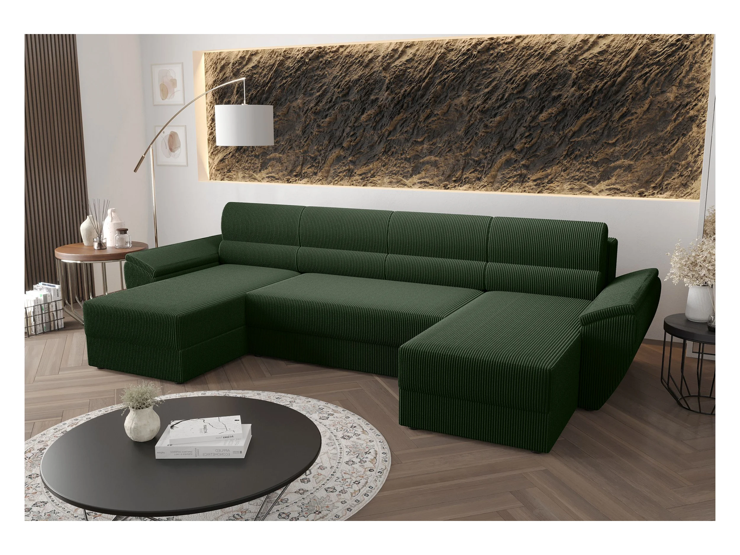 BEDANTE canapé d’angle REBIU2 Poso 14 vert foncé avec fonction de couchage canapé en U avec espace de rangement
