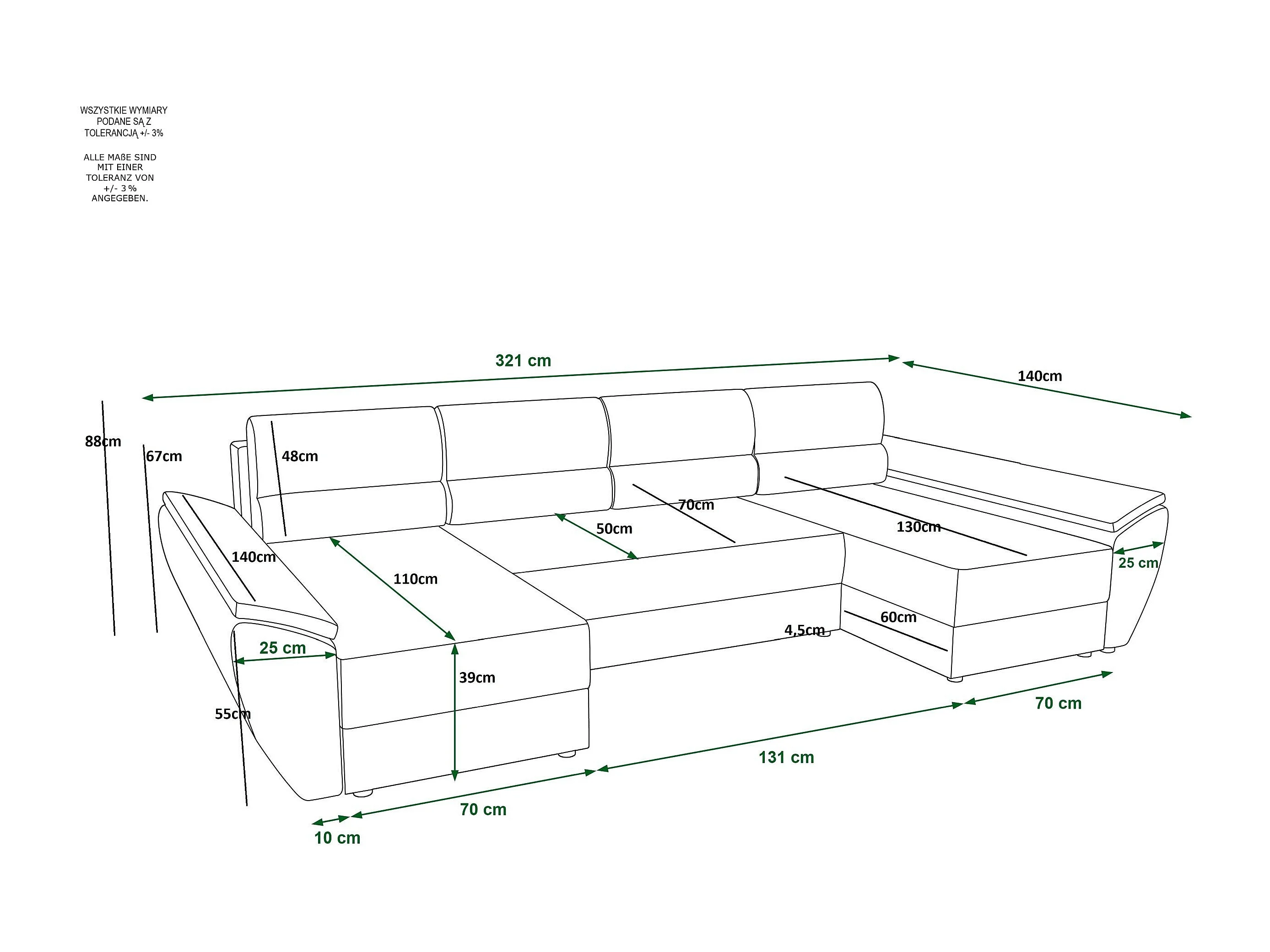 BEDANTE canapé d’angle REBIU4 RAINBOW 15+83 noir/rouge avec fonction de couchage canapé en L avec espace de rangement
