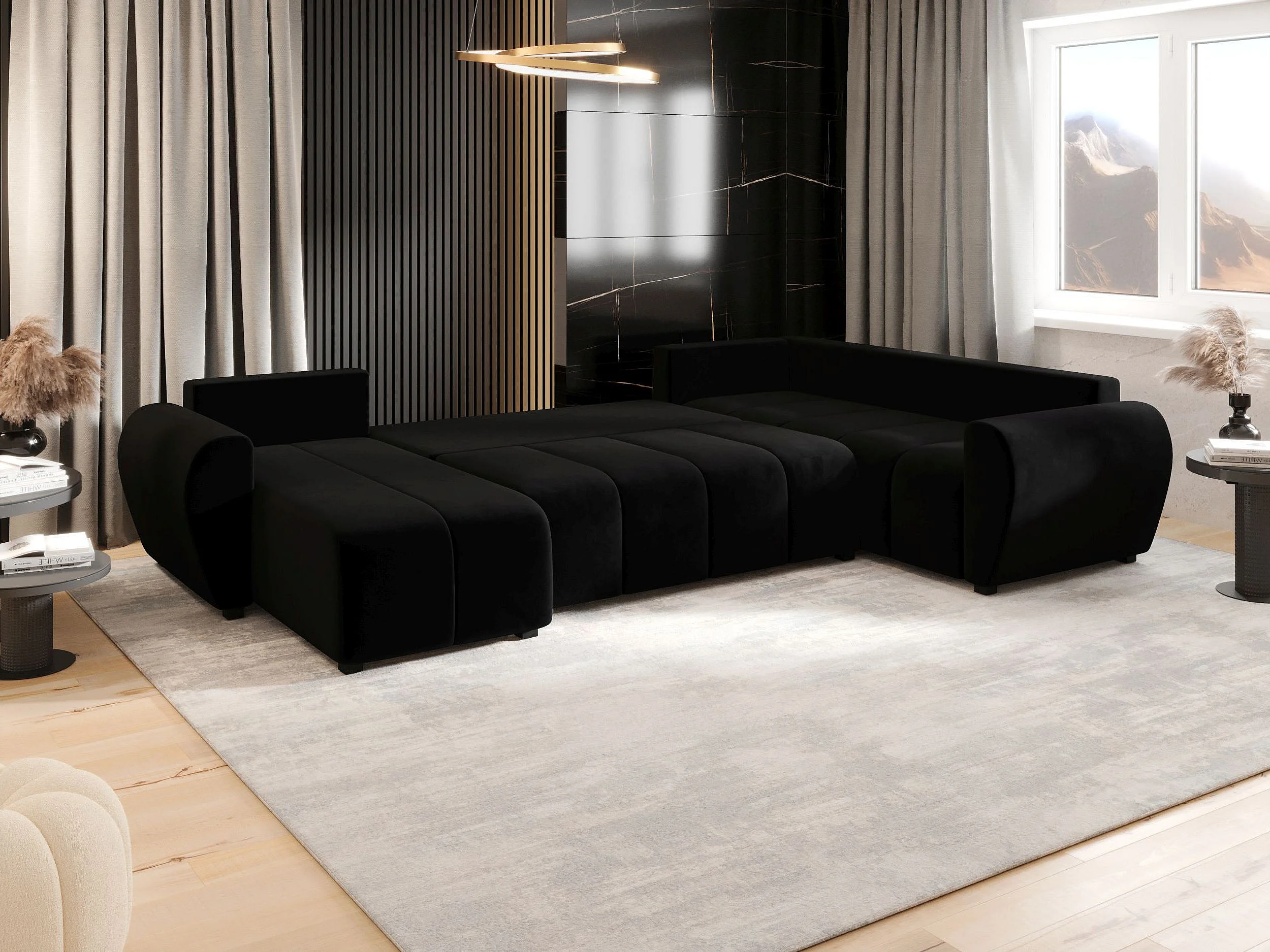 BEDANTE canapé panoramique MOLISA U PLUS Itaka 15 droit noir avec fonction de couchage canapé en forme de U
