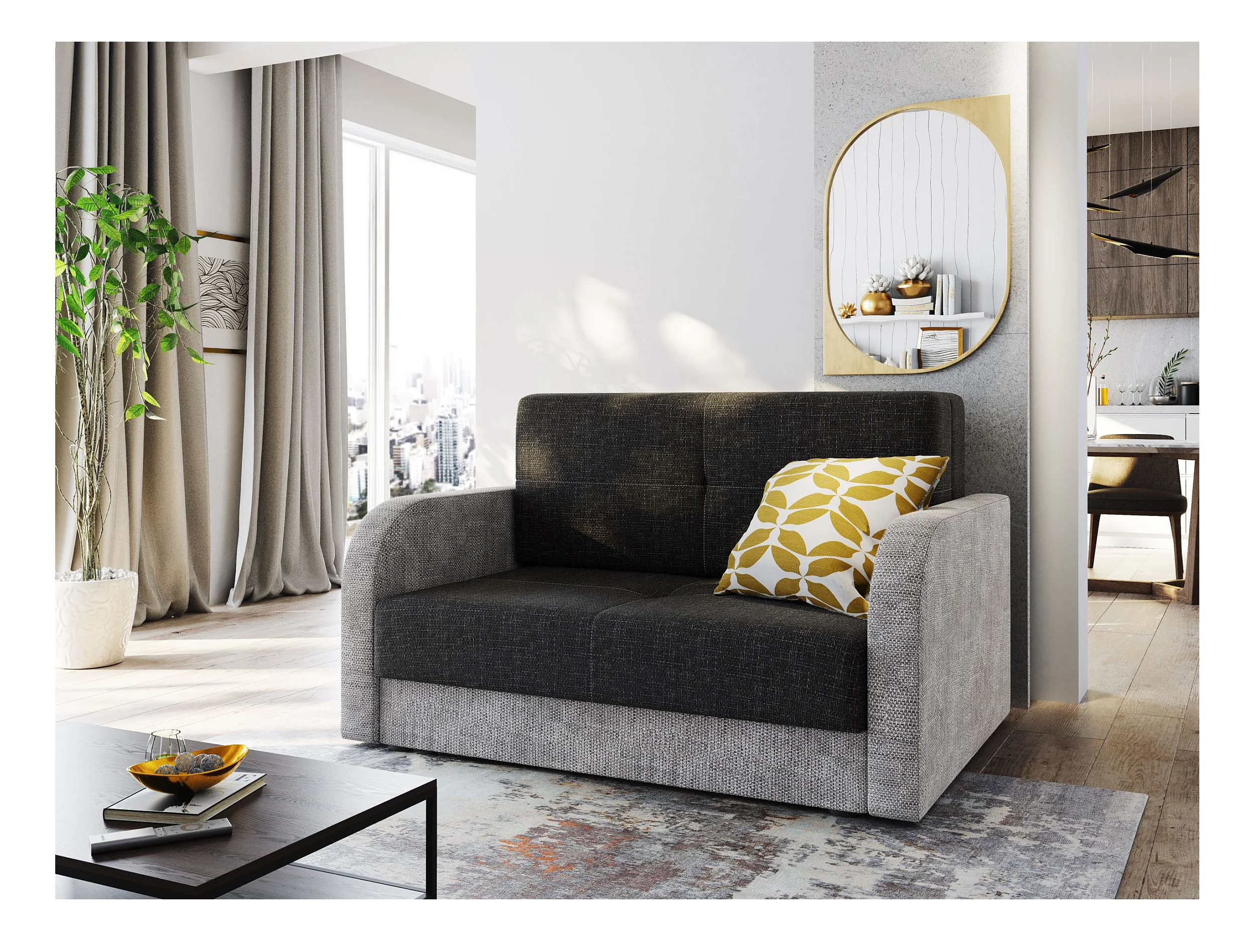 BEDANTE canapé TWICE 120 avec fonction de couchage KORNET 10+18 noir/gris