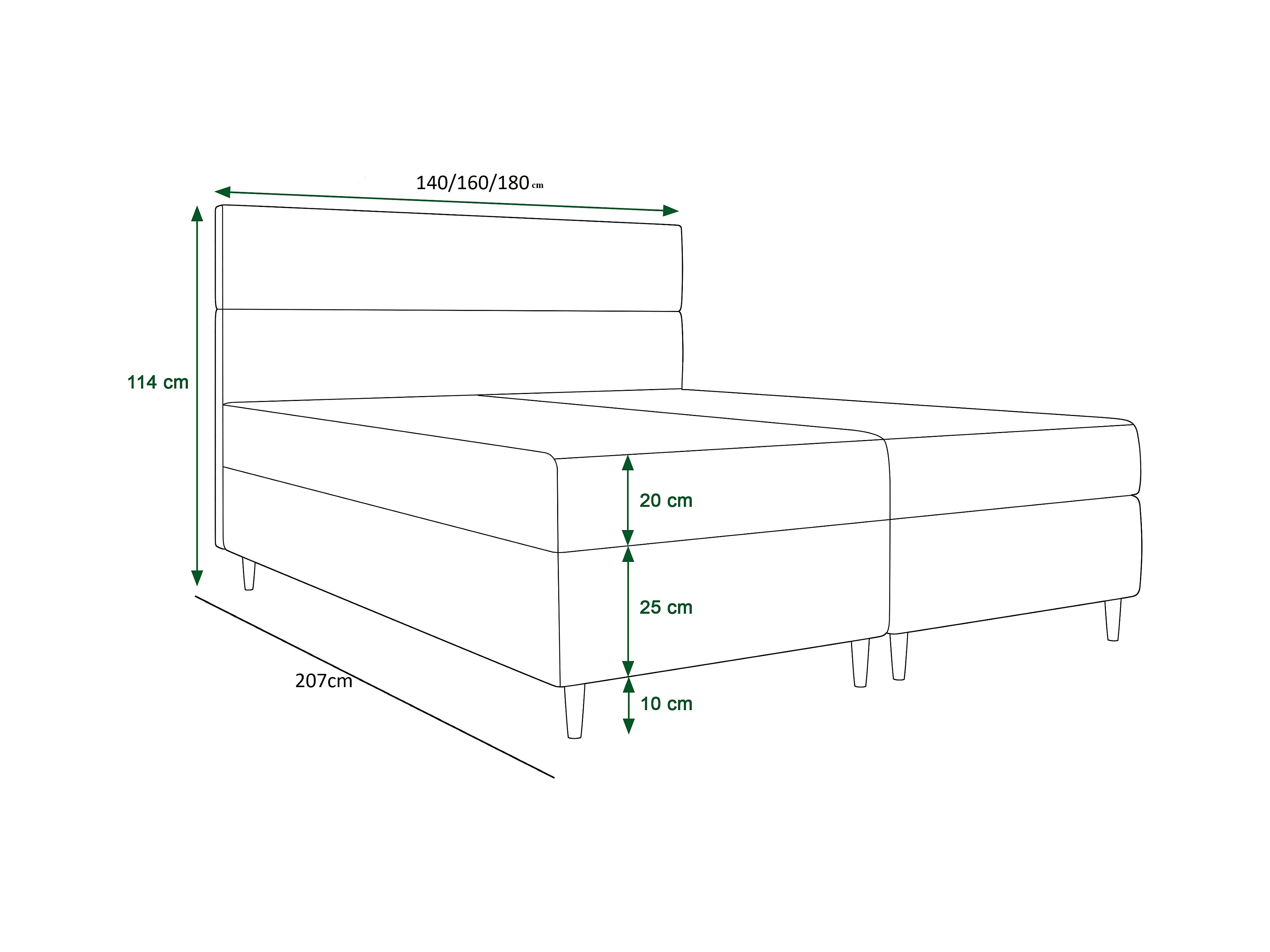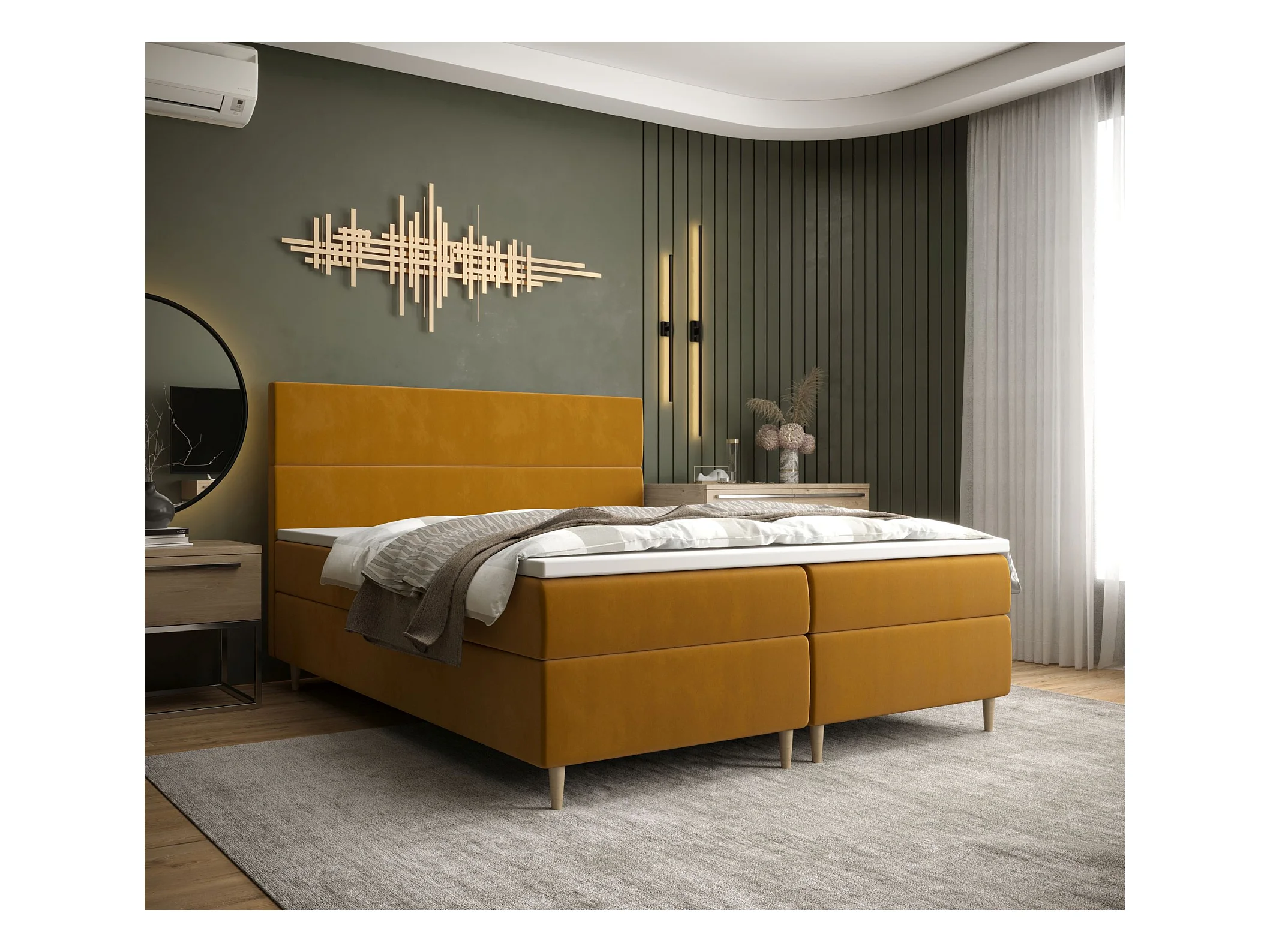 BEDANTE Lit boxspring FLO 140x200 Itaka 33 Orange Lit Litkasten Lit simple Lit d'hôtel Surmatelas Matelas Chambre à coucher Espace de rangement