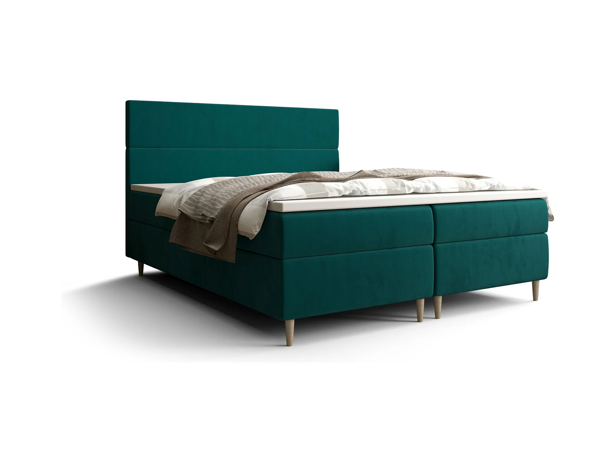 BEDANTE Lit boxspring FLO 140x200 Itaka 39 Vert Lit Litkasten Lit simple Lit d'hôtel Surmatelas Matelas Chambre à coucher Espace de rangement