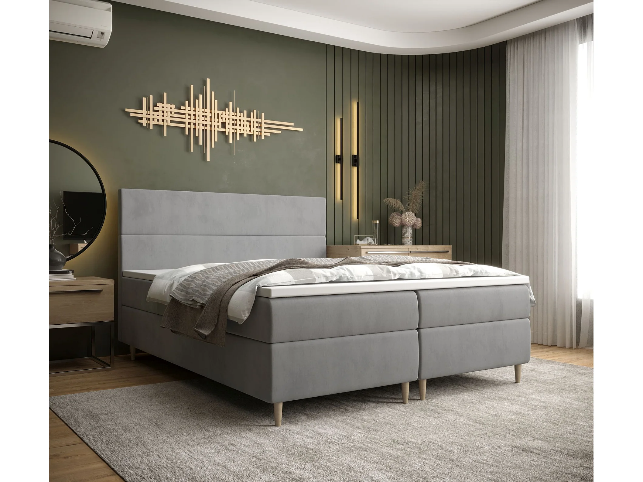 BEDANTE Lit boxspring FLO 140x200 Itaka 50 Gris clair Lit Litkasten Lit simple Lit d'hôtel Surmatelas Matelas Chambre à coucher Espace de rangement