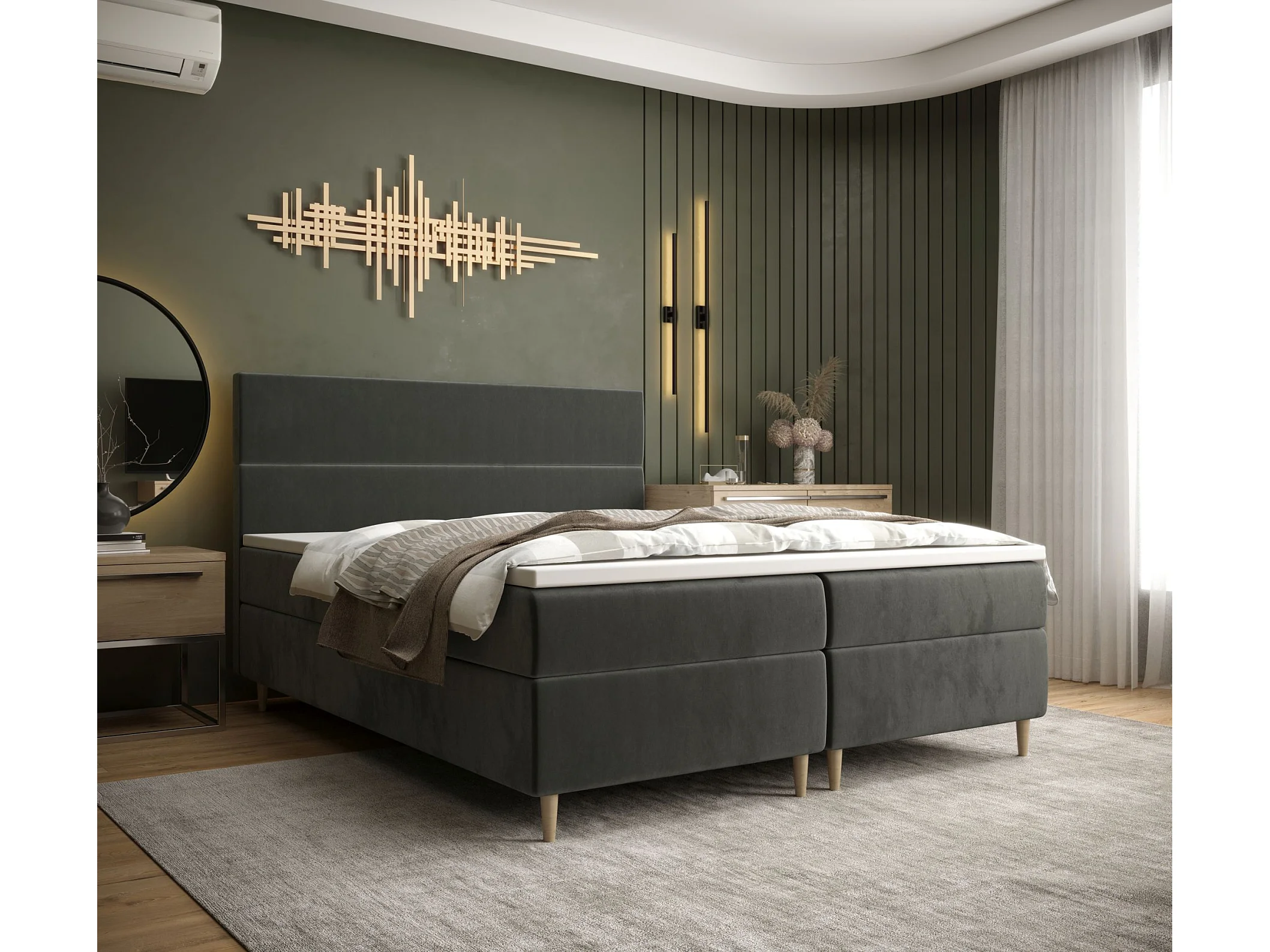 BEDANTE Lit boxspring FLO 180x200 Itaka 27 Gris foncé Lit Litkasten Lit simple Lit d'hôtel Surmatelas Matelas Chambre à coucher Espace de rangement