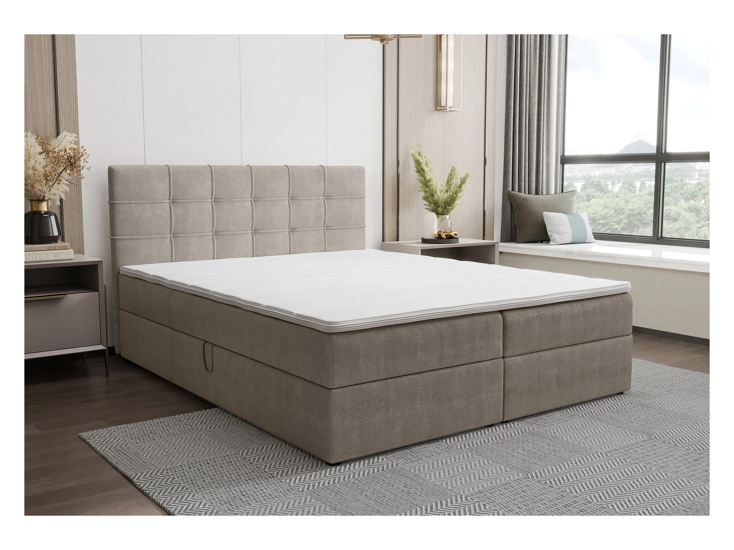 BEDANTE Lit boxspring KIDA 160x200 Curio 11 Beige Lit Litkasten Lit double Lit d'hôtel Chambre à coucher Espace de rangement