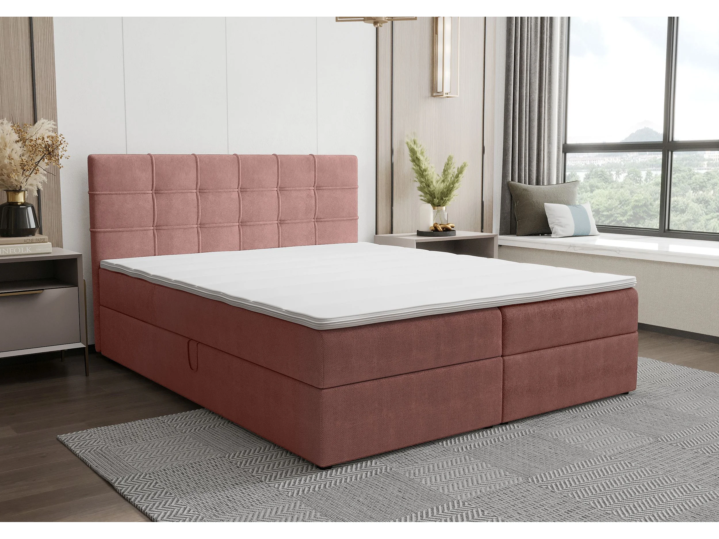 BEDANTE Lit boxspring KIDA 160x200 Curio 63 Rose Lit Litkasten Lit double Lit d'hôtel Chambre à coucher Espace de rangement