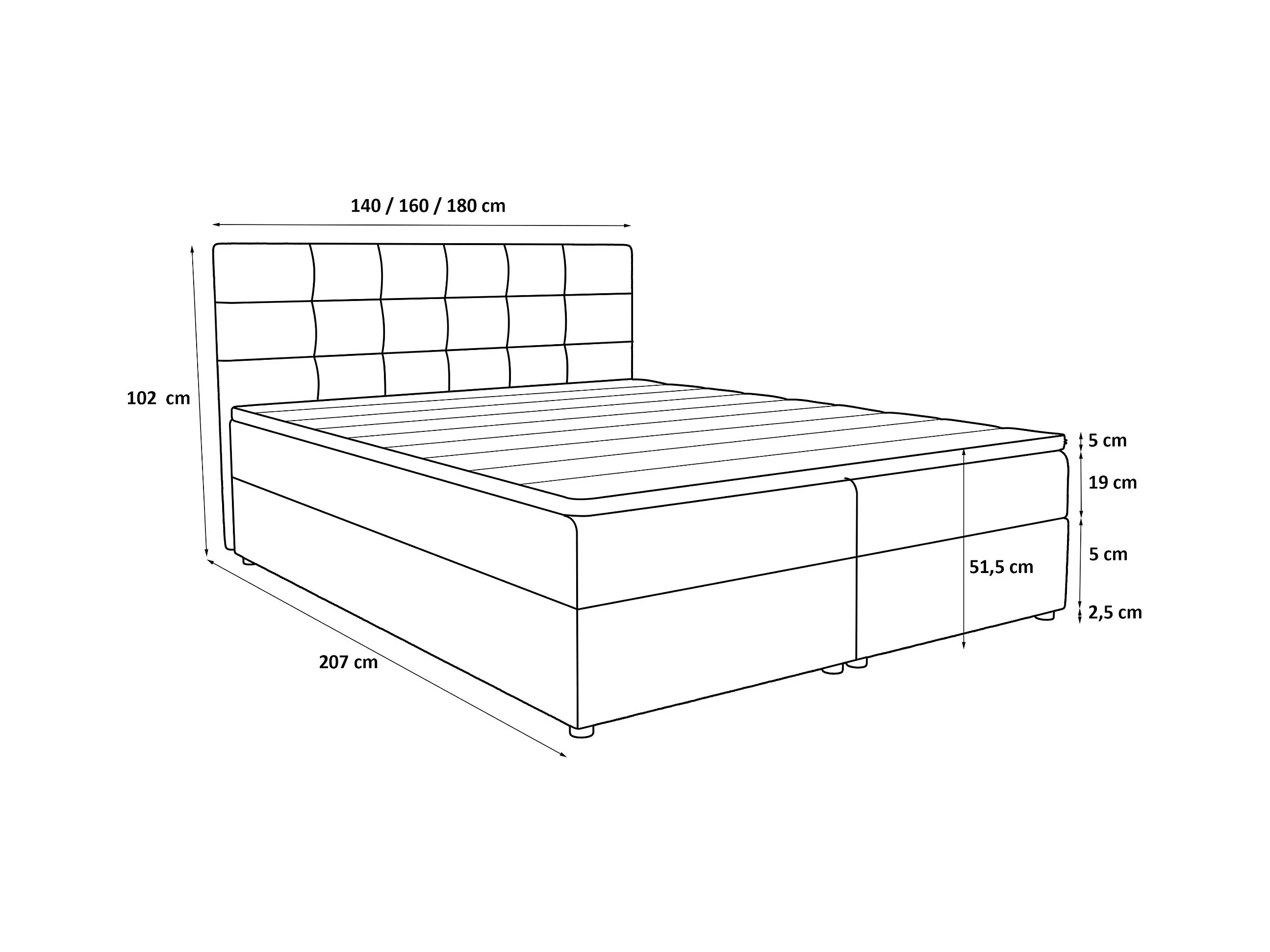 BEDANTE Lit boxspring KIDA 180x200 Curio 93 Gris foncé Lit Litkasten Lit double Lit d'hôtel Chambre à coucher Espace de rangement