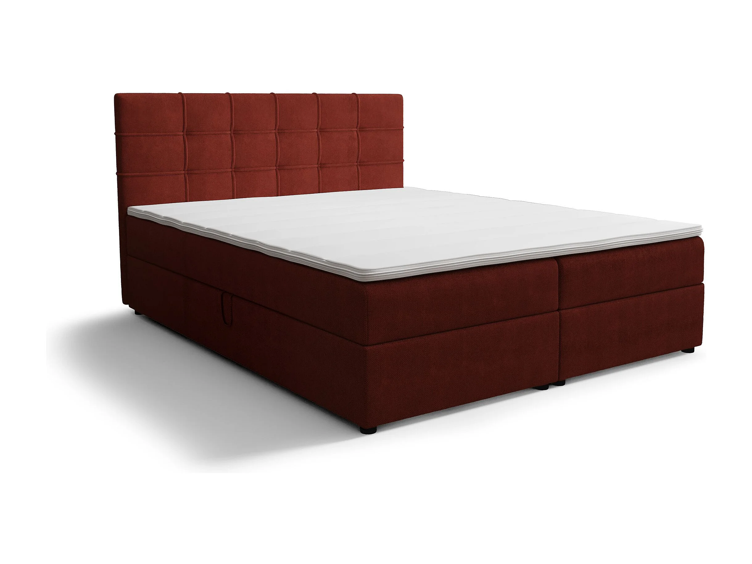 BEDANTE Lit boxspring KIDA 200x200 Curio 57 Rouge Lit Litkasten Lit double Lit d'hôtel Chambre à coucher Espace de rangement
