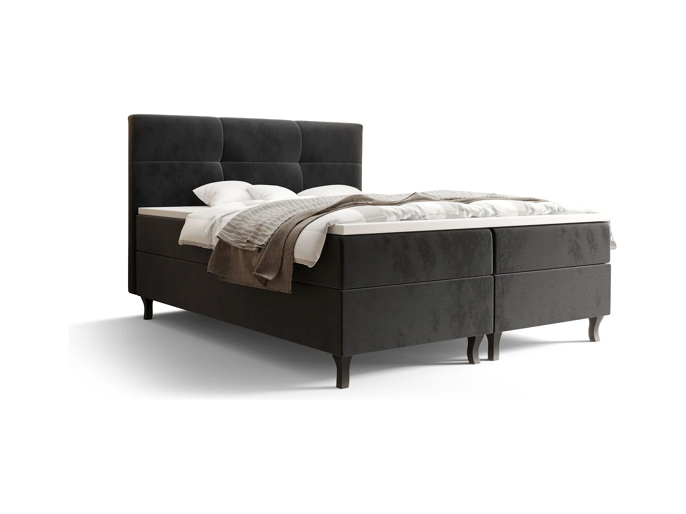 BEDANTE Lit Boxspring LIMBA 140x200 Monolith 97 Gris foncé Lit avec coffre Lit double Lit d’hôtel Surmatelas Matelas Chambre Espace de rangement