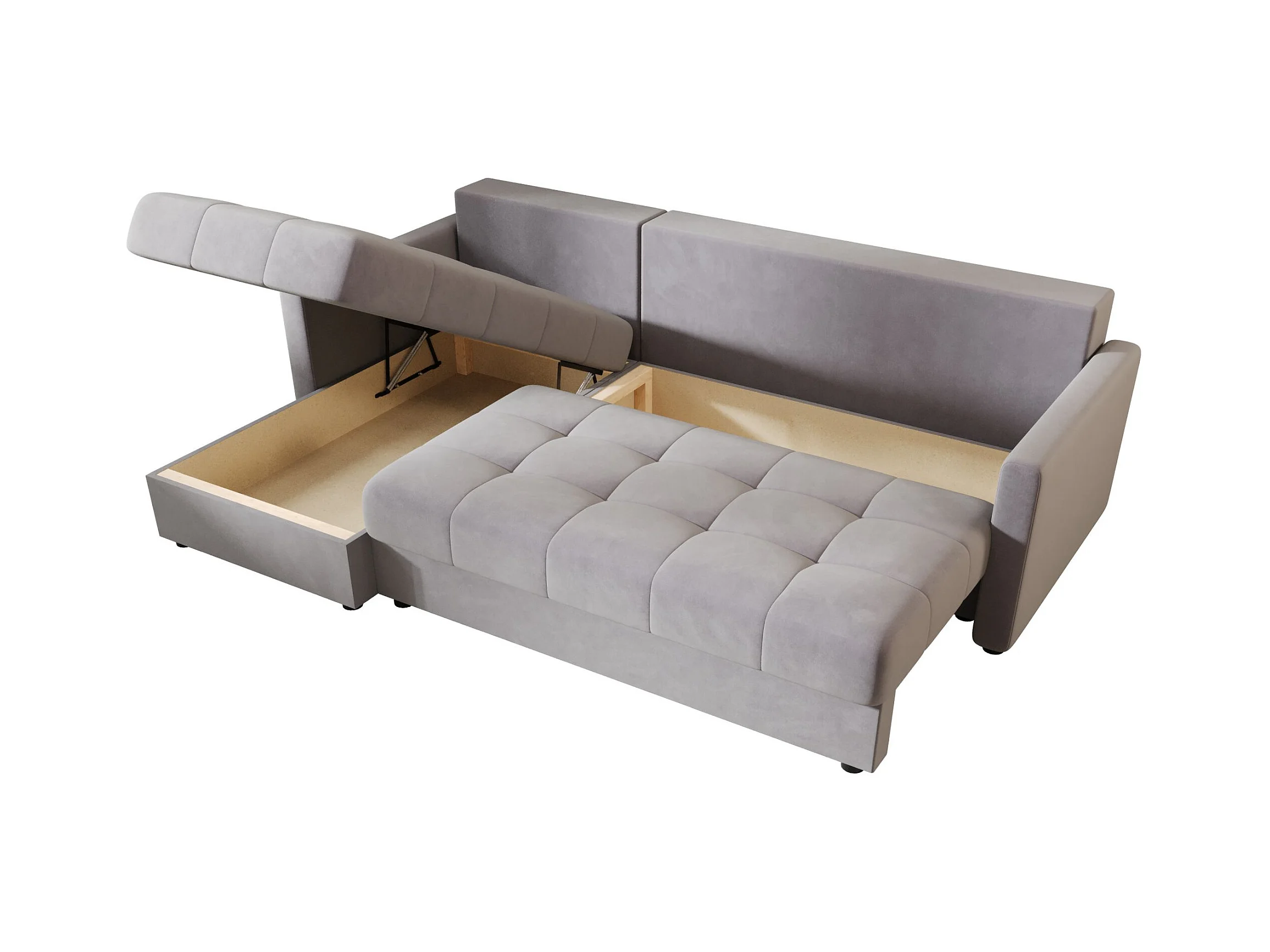 BEDANTE narożnik MOS L BIS Itaka 50 gris droite avec fonction de lit canapé en L avec coffre de rangement canapé de salon, canapé convertible