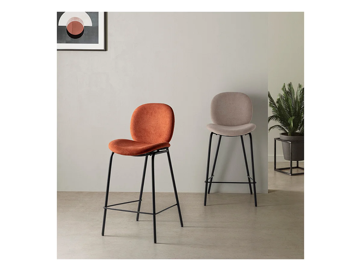 Lot de 2 tabourets en tissu avec pieds en métal noir L43 cm - CORI