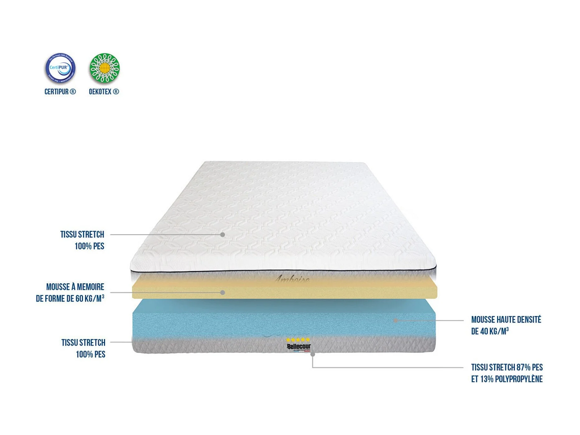 AMBOISE - Matelas mémoire de forme + sommier bois - ferme