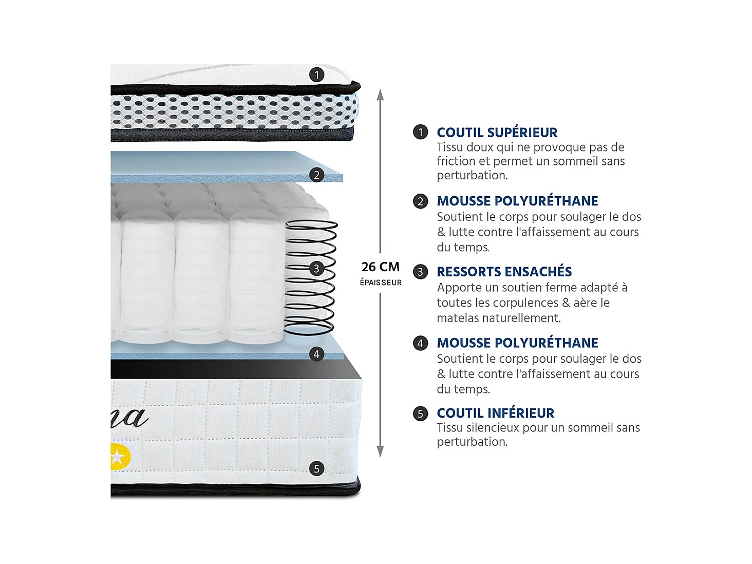 BELLECOUR LITERIE | Ensemble REINA 2.0 180x200 cm | Matelas Ressorts ensachés + Protège matelas anti punaise