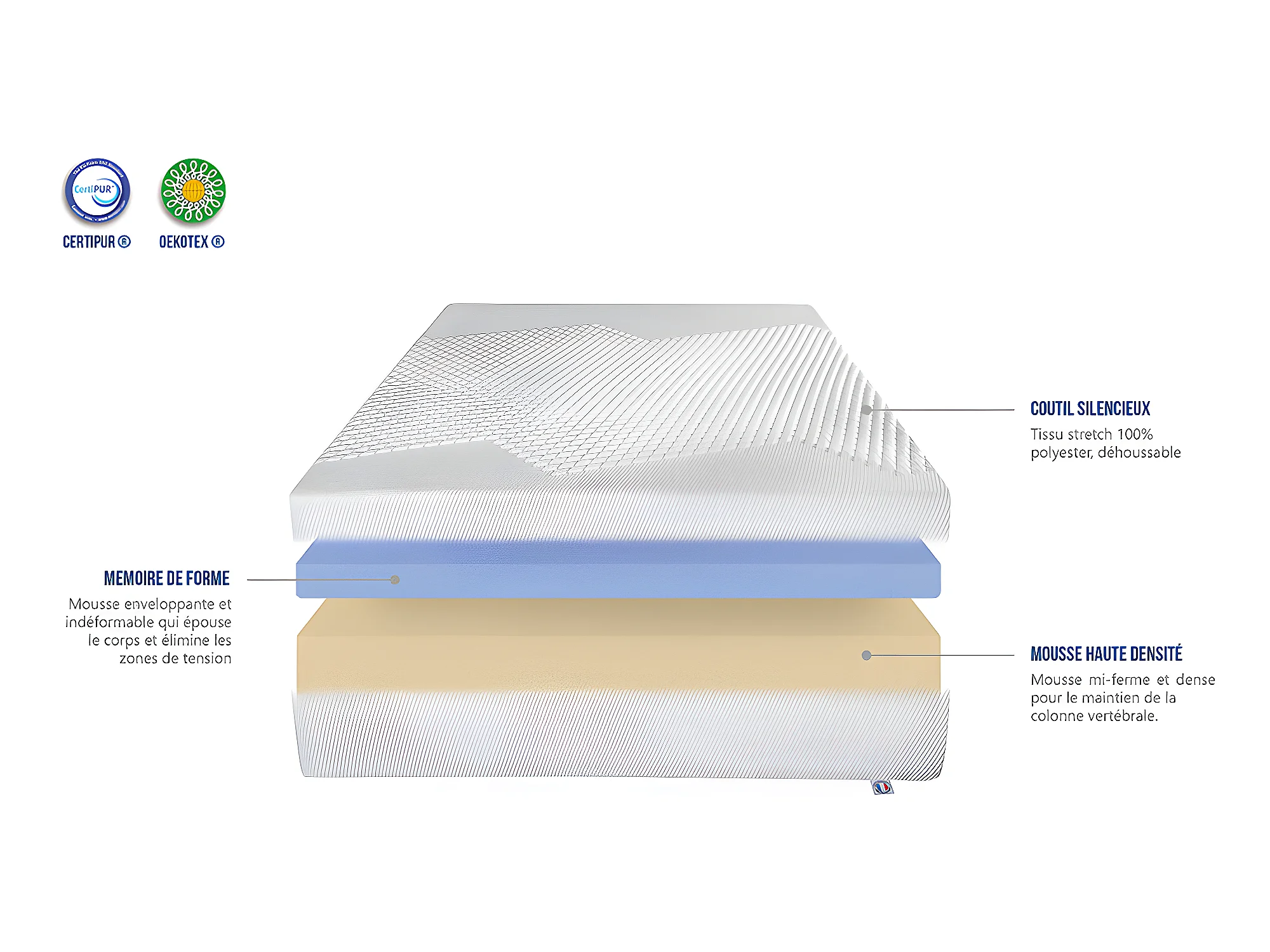 BELLECOUR LITERIE | Matelas AINAY 180x200 cm | Mousse avec mémoire de forme