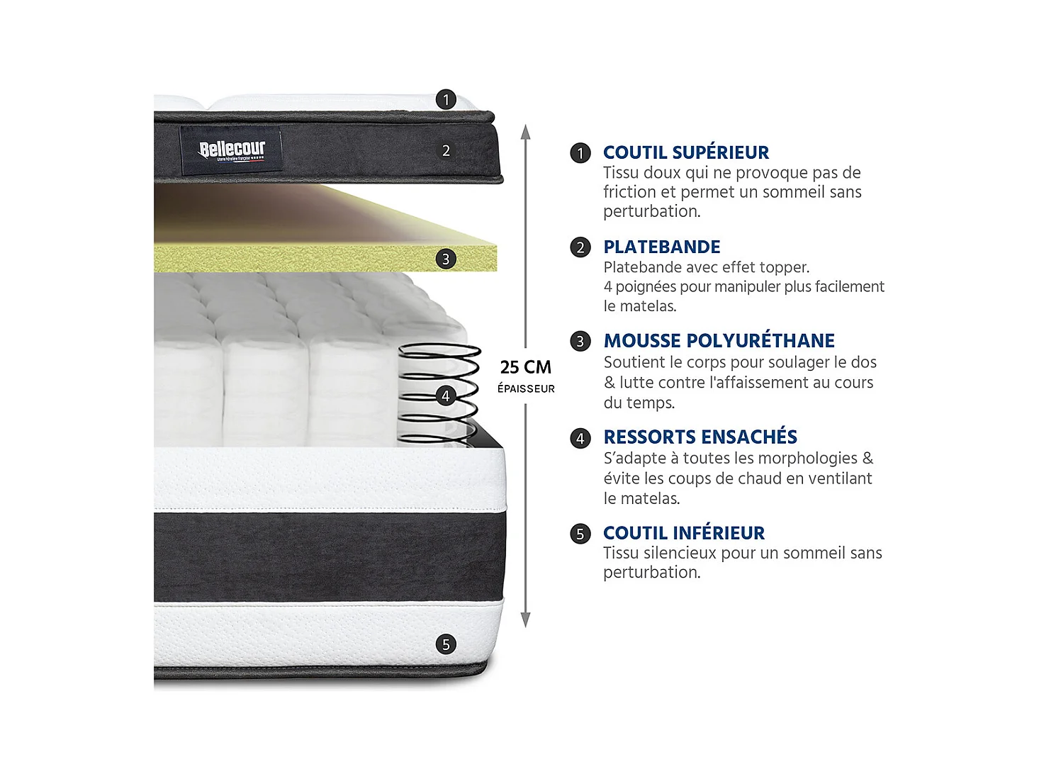 BELLECOUR LITERIE | Matelas FONTAINEBLEAU 180x200 cm | Ressorts ensachés