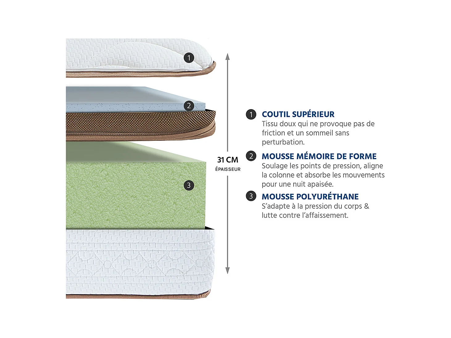 BELLECOUR LITERIE | Matelas ZERMATT 180x200 cm | Mousse avec mémoire de forme