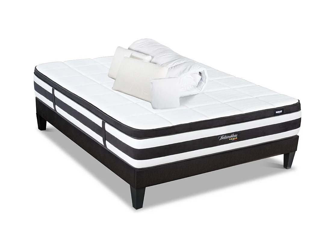 BELLECOUR LITERIE | Pack Prêt à dormir FONTAINEBLEAU 160x200 cm | Matelas Ressorts ensachés + Sommier + Accessoires