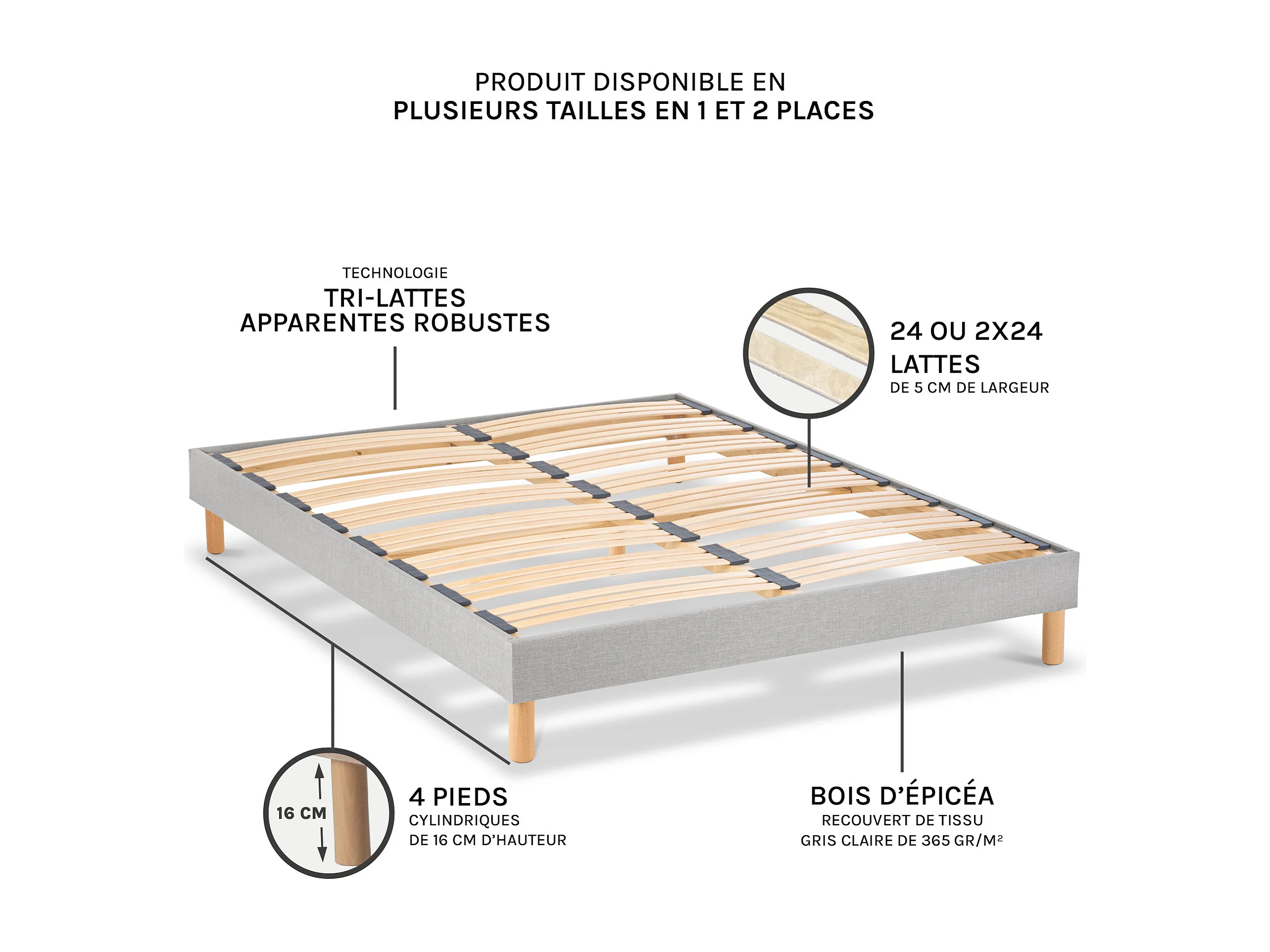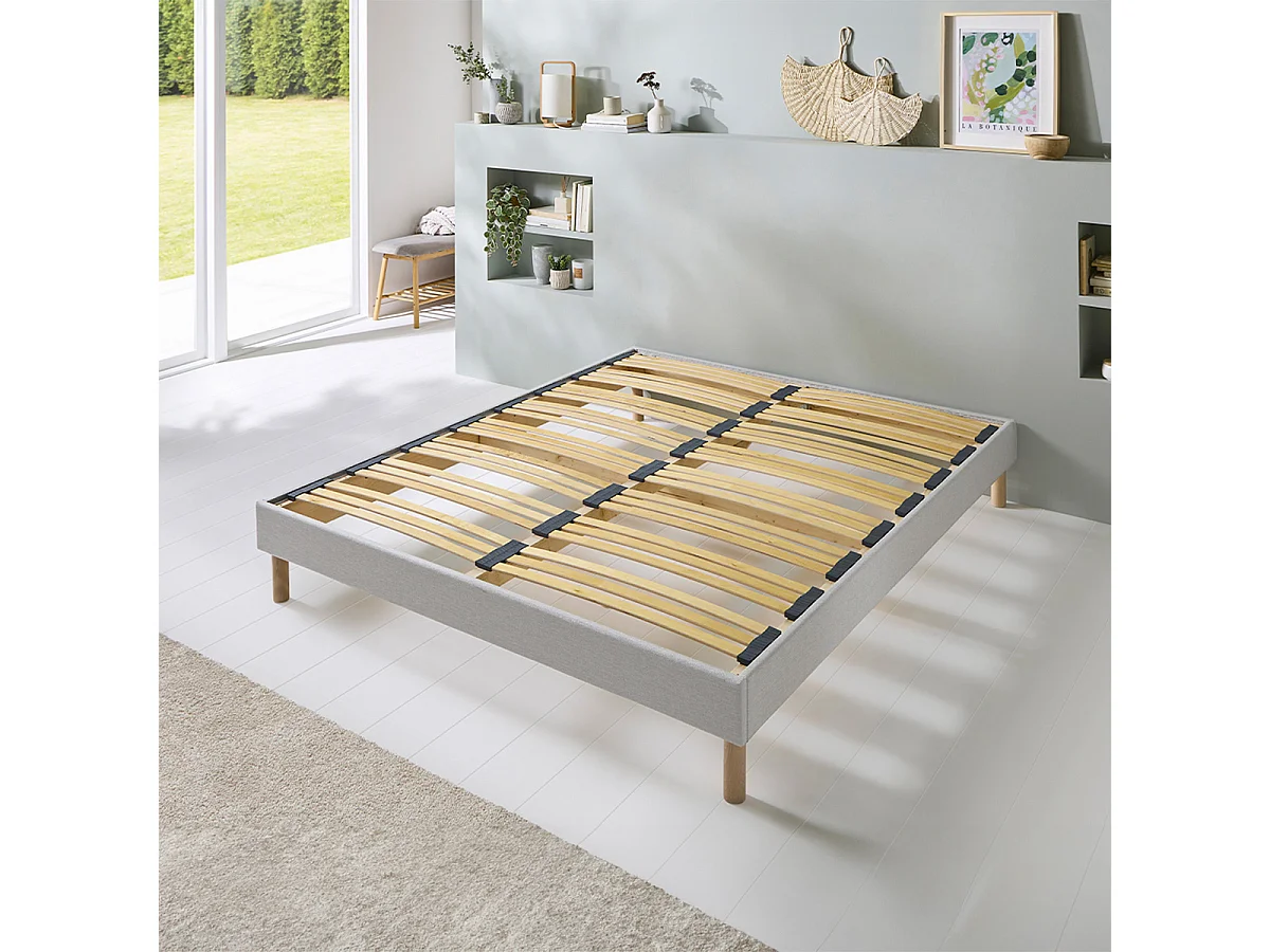 BELLECOUR LITERIE | Sommier à lattes en bois CAPITOLE 90x190 cm | Coloris Gris clair | Livré en kit