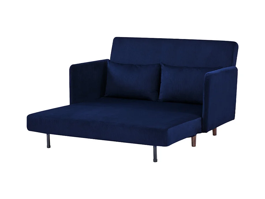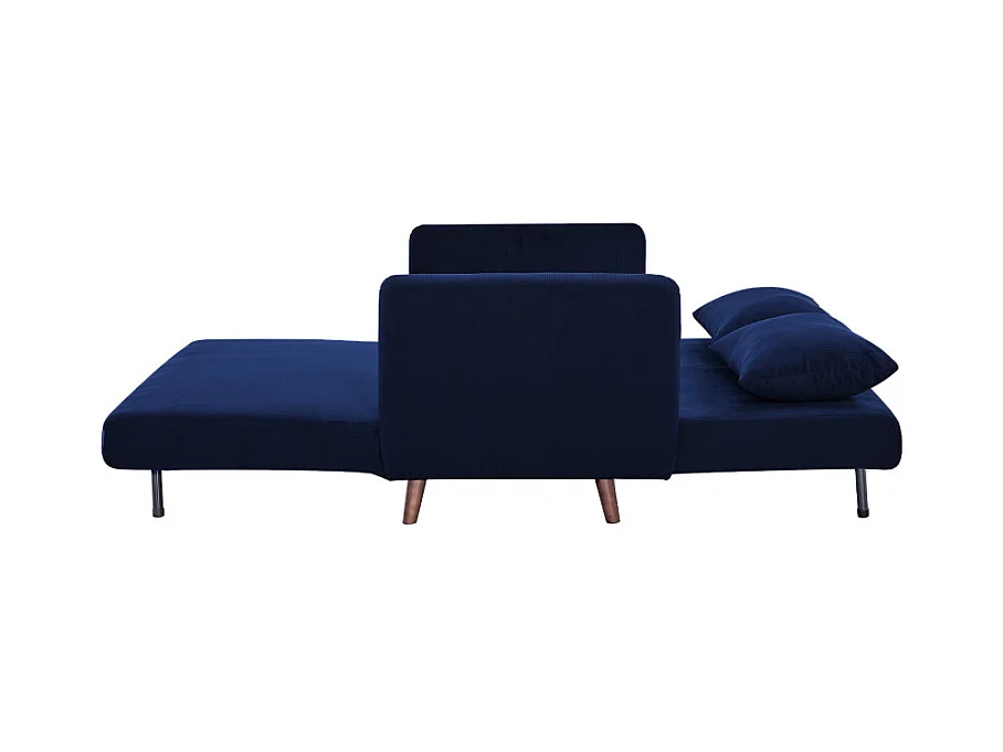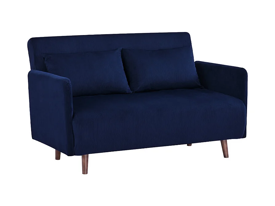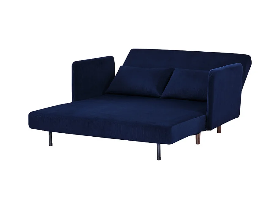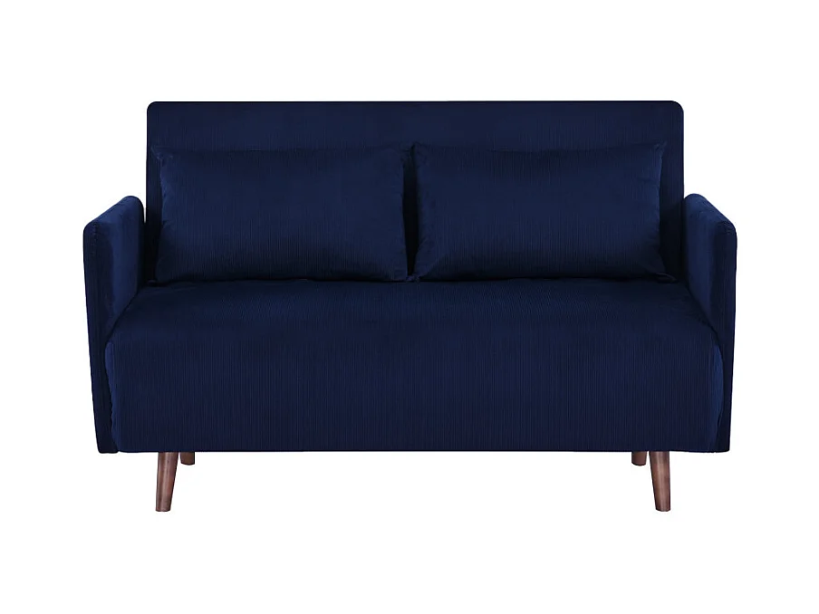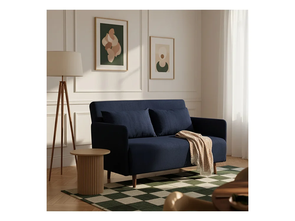 Belushi - Canapé convertible 2 places en velours côtelé L120cm - Bleu marine