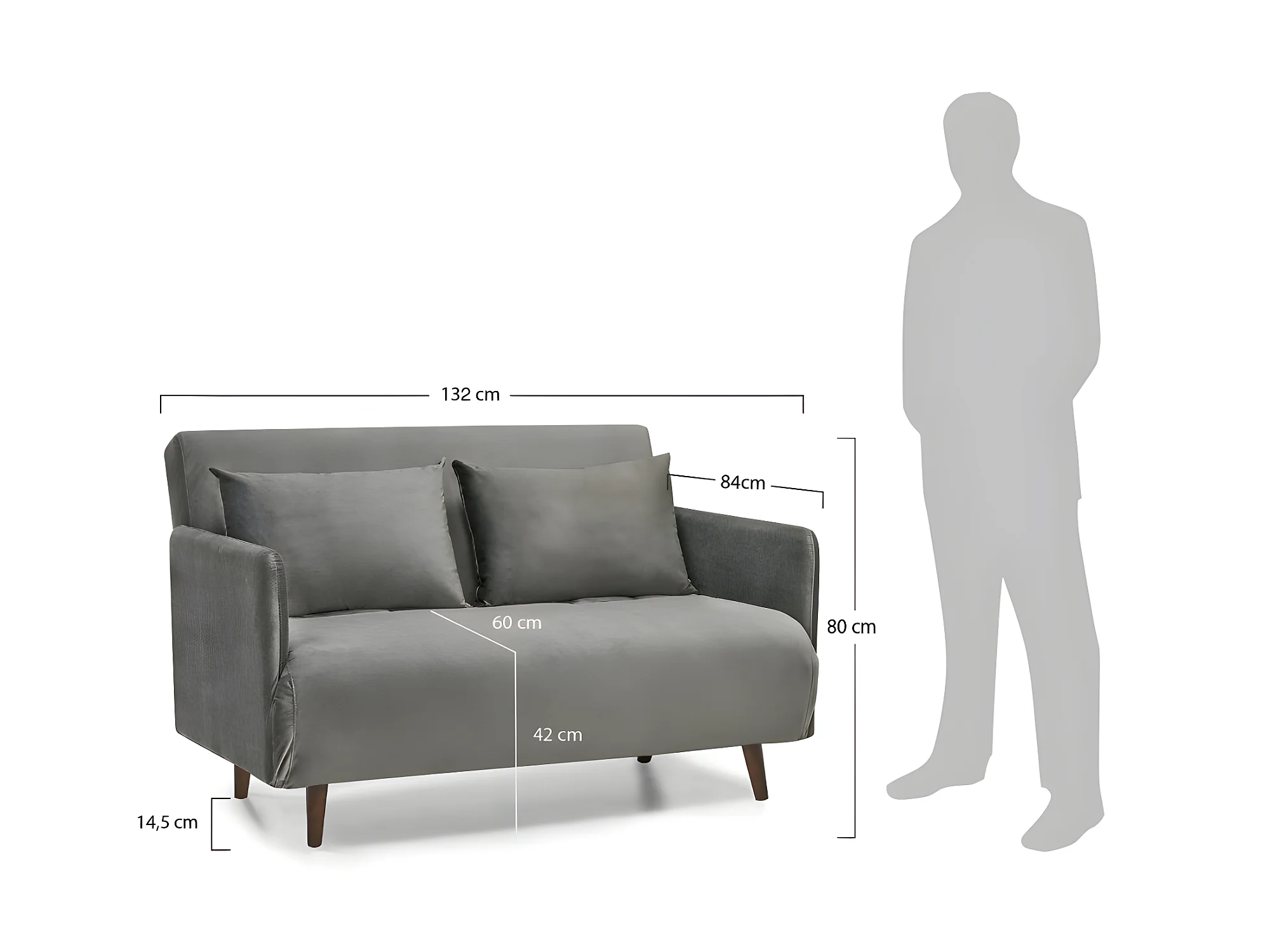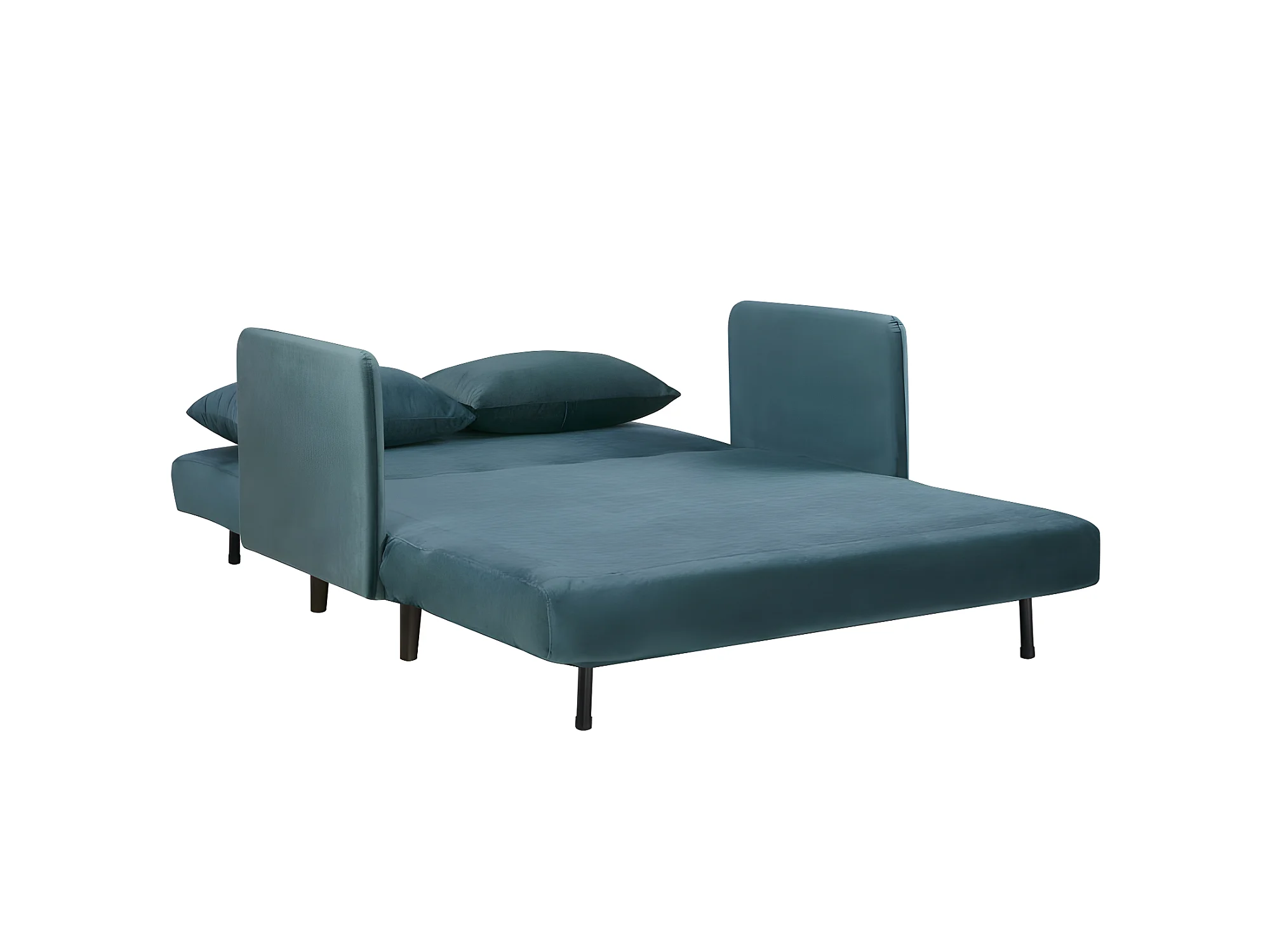 Belushi - Canapé convertible 2 places en velours L120cm - Bleu canard