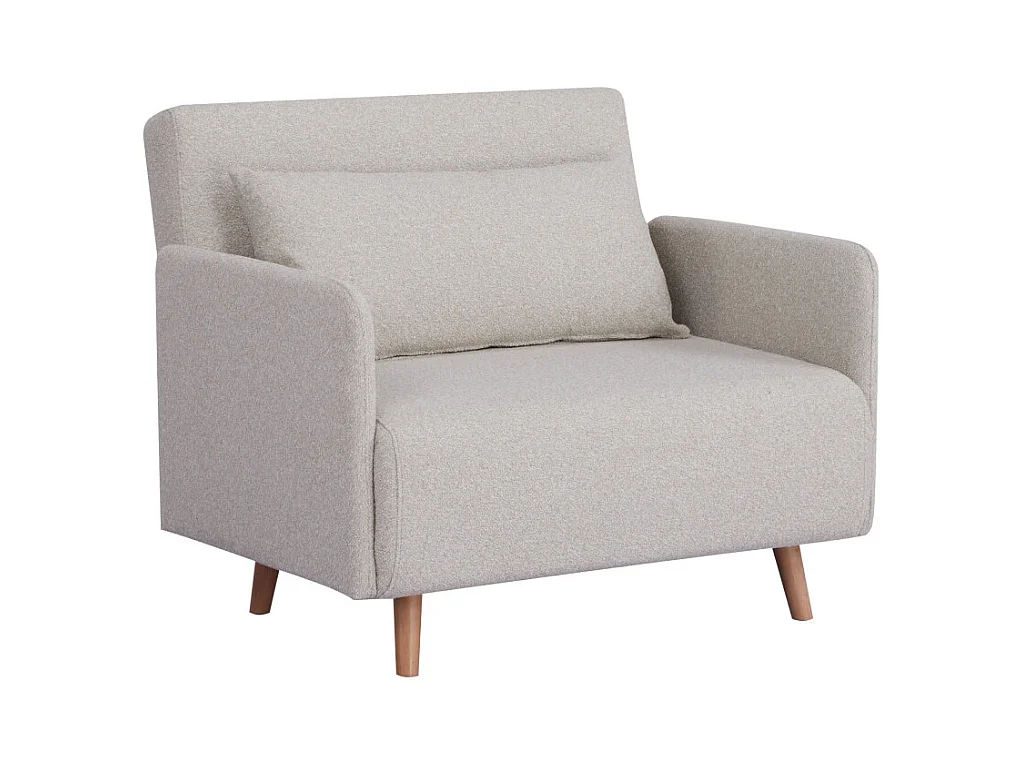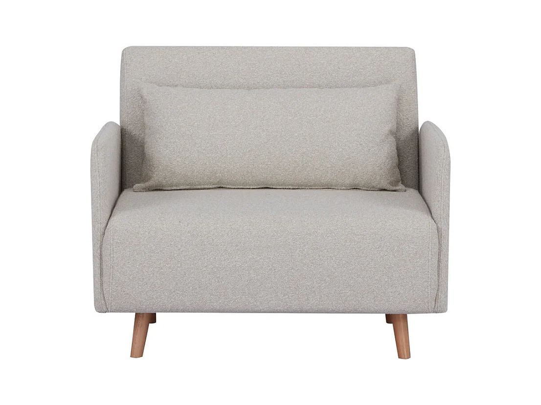 Belushi - Fauteuil convertible en tissu bouclette pieds bois clair - Écru
