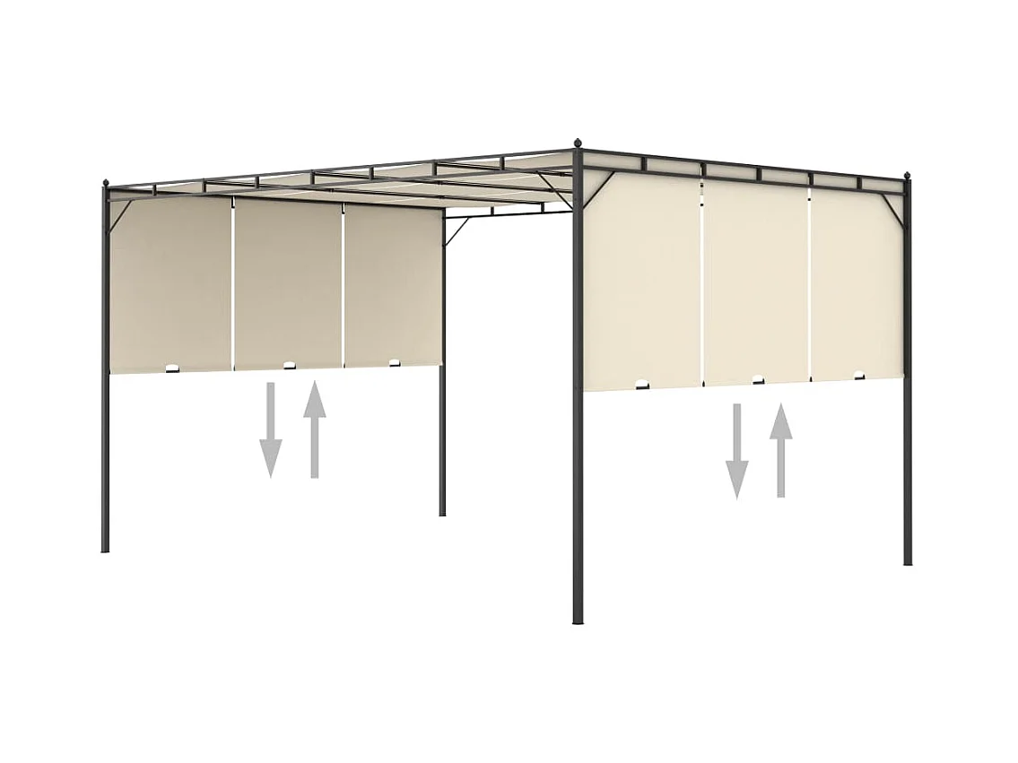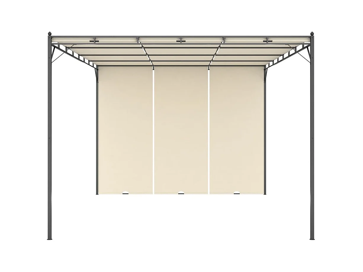 Belvédère de jardin avec rideau latéral 4x3x2,25 m Crème