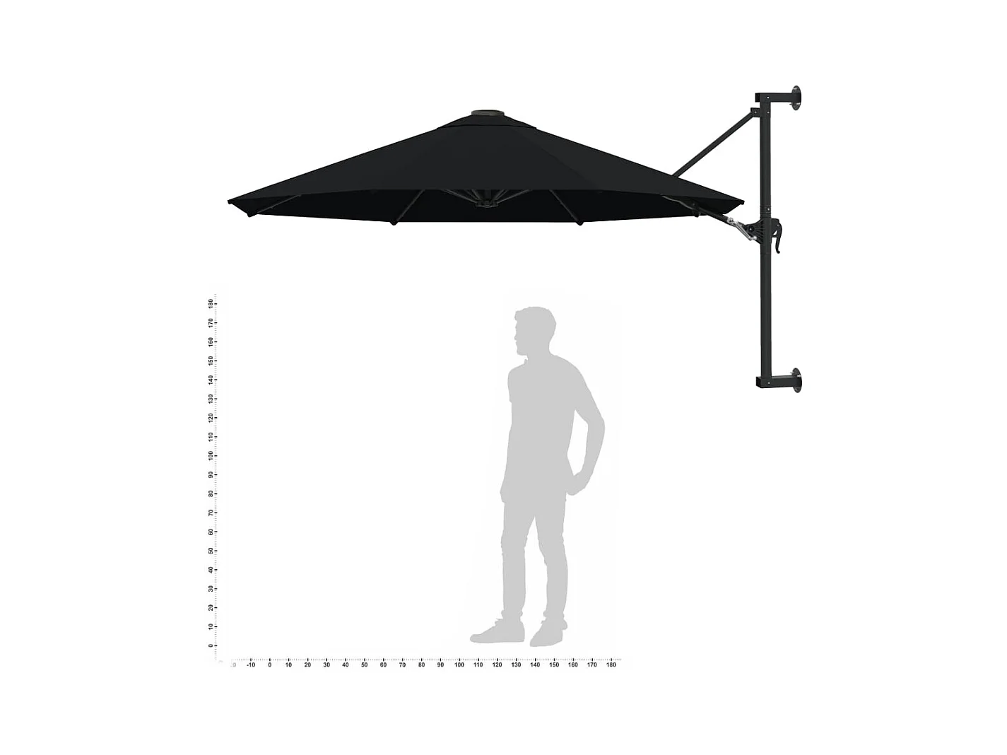 Marith Parasol mural de jardin avec LED 300 cm noir